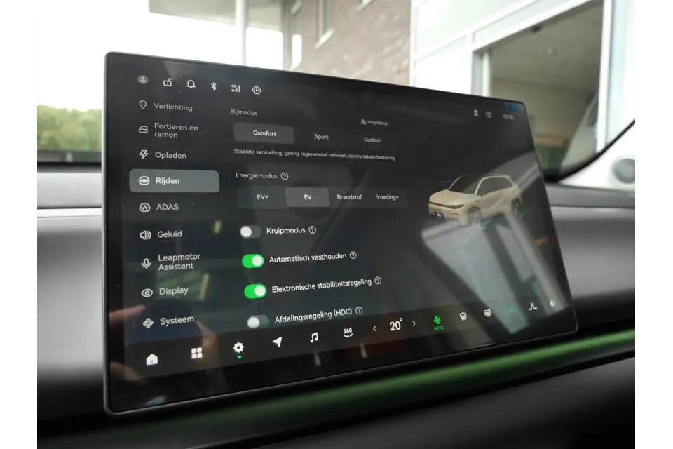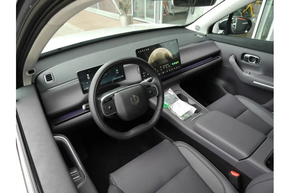 Met zijn inventieve techniek is de hybride Leapmotor C10 tegelijk comfortabel en zuinig met brandstof. Dit is een nieuwe auto, hij is nu direct leverbaar. De hybride motor combineert een elektromotor met een verbrandingsmotor. U kunt dus kiezen. Verwarmde stoelen maken het interieur behaaglijk op winterse dagen. Een handige voorziening op deze auto is de elektrische achterklep die u op afstand kunt openen. Overdag een weidse zichthoek en 's avonds het lichtspel in de binnenruimte: dat geeft het glazen panoramadak! Fijn plusje, zeker in de kille dagen, is het verwarmd stuurwiel. Bij de rijke uitrusting horen ook 20 inch lichtmetalen velgen, LED koplampen, extra getint glas, in delen neerklapbare achterbank en LED-achterlichten.