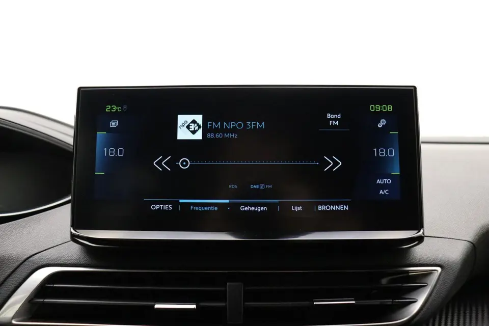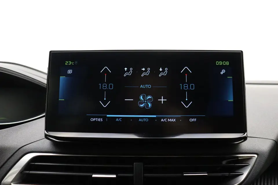 Alle benodigde informatie helder in beeld: het digitale dashboard is een geweldige rijhulp. Nooit meer parkeerschade dankzij de achteruitrijcamera. Functies activeren en storingen opsporen? Bij deze auto gaat het eenvoudig via uw smartphone. Overal en altijd. In deze 3008 vindt u niet alleen schakelaars op het stuur om het full map navigatiesysteem te bedienen en het audiosysteem met DAB-ontvangst, maar er is ook spraakbediening. De electronic climate control zorgt onder alle omstandigheden voor een prettige temperatuur. En deze auto heeft ook regensensor, cruise control, keyless entry, automatisch dimmende binnenspiegel en lederen stuur als standaard uitrusting.