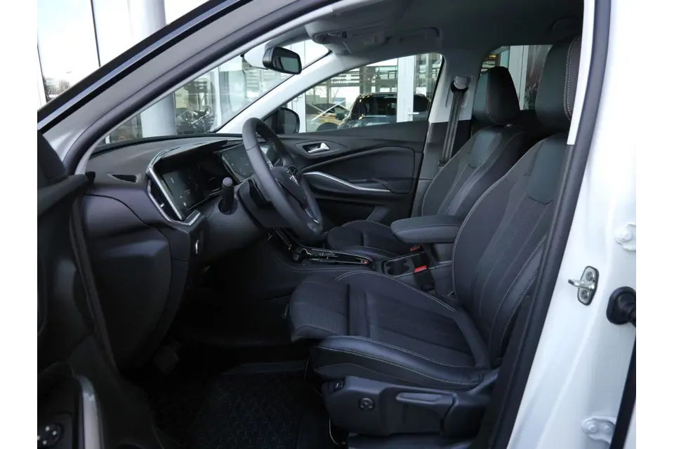 Hij is stijlvol en comfortabel, deze Opel Grandland, en hij is ontworpen om u veilig en comfortabel te laten rijden onder alle omstandigheden. Hij heeft een benzinemotor en een automatische transmissie. Op koude en donkere dagen zijn de verwarmbare voorstoelen een uitkomst. Neem plaats achter het stuur en ervaar de weldaad van de comfortstoelen. Bij de rijke uitrusting horen ook 18 inch lichtmetalen velgen, LED koplampen, aluminium dakrailing, elektrisch inklapbare buitenspiegels, extra getint glas en in delen neerklapbare achterbank.