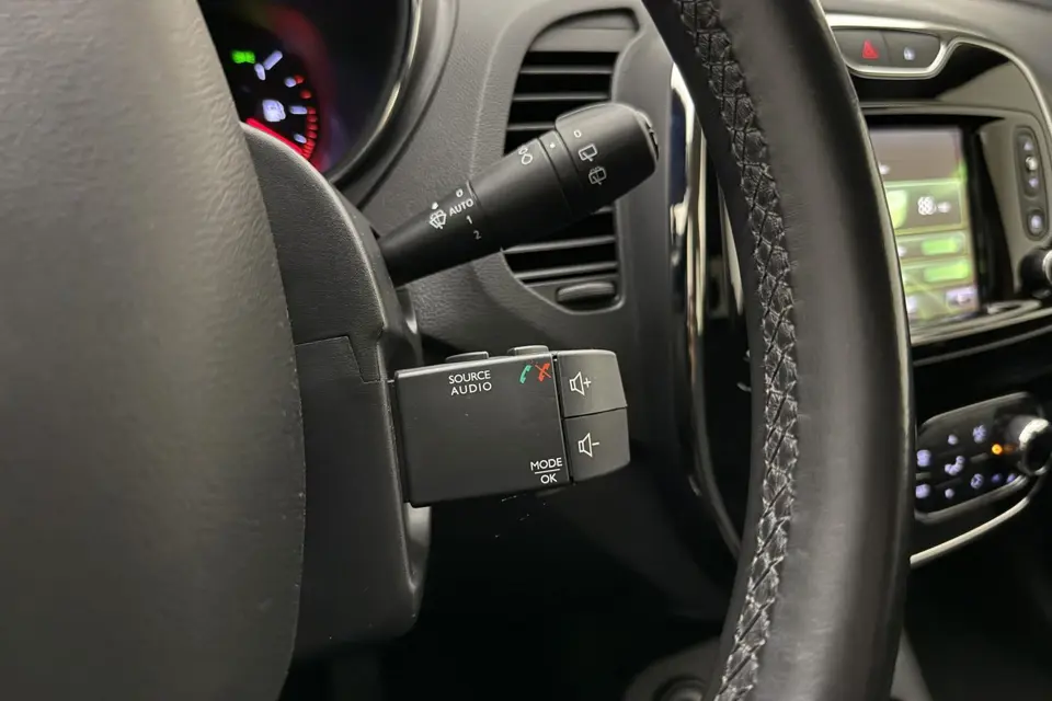 Een belangrijke veiligheidsvoorziening is de bediening van het audio-installatiesysteem en het full map navigatiesysteem, via knoppen op het stuur en middels spraakbediening. DAB-ontvangst geeft daarbij een kraakheldere ontvangst. Met de automatische airconditioning selecteert u de gewenste temperatuur. Het systeem doet de rest. Het hoort bij een intelligente auto als deze dat hij zelf in staat is om zijn omgeving in de gaten te houden. Dat doet deze Renault met een automatisch inschakelbare verlichting en een regensensor. Voor de lange ritten is de cruise control een verademing. Een mooie eigentijdse optie is de keyless entry: zonder sleutels gaan alle sloten open zodra u in de buurt bent!