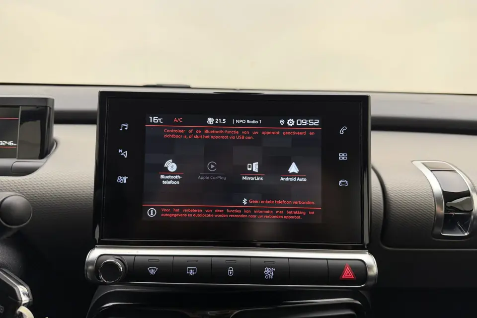 Zoals u mag verwachten van deze Citroen C4 Cactus is hij uitgerust met een reeks aan actieve veiligheidssystemen. Een kortere remweg verkleint de kans op een aanrijding. Brake assist helpt actief mee tijdens een noodstop. Ook helpen het hill hold functie en bandenspanningcontrolesysteem, uw rit tot een veilige rit te maken.