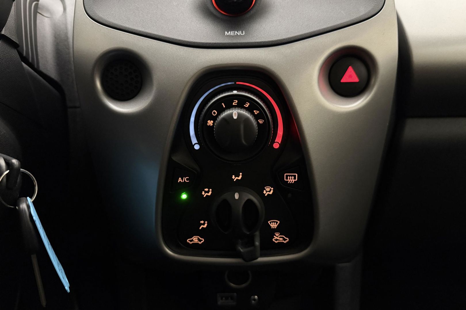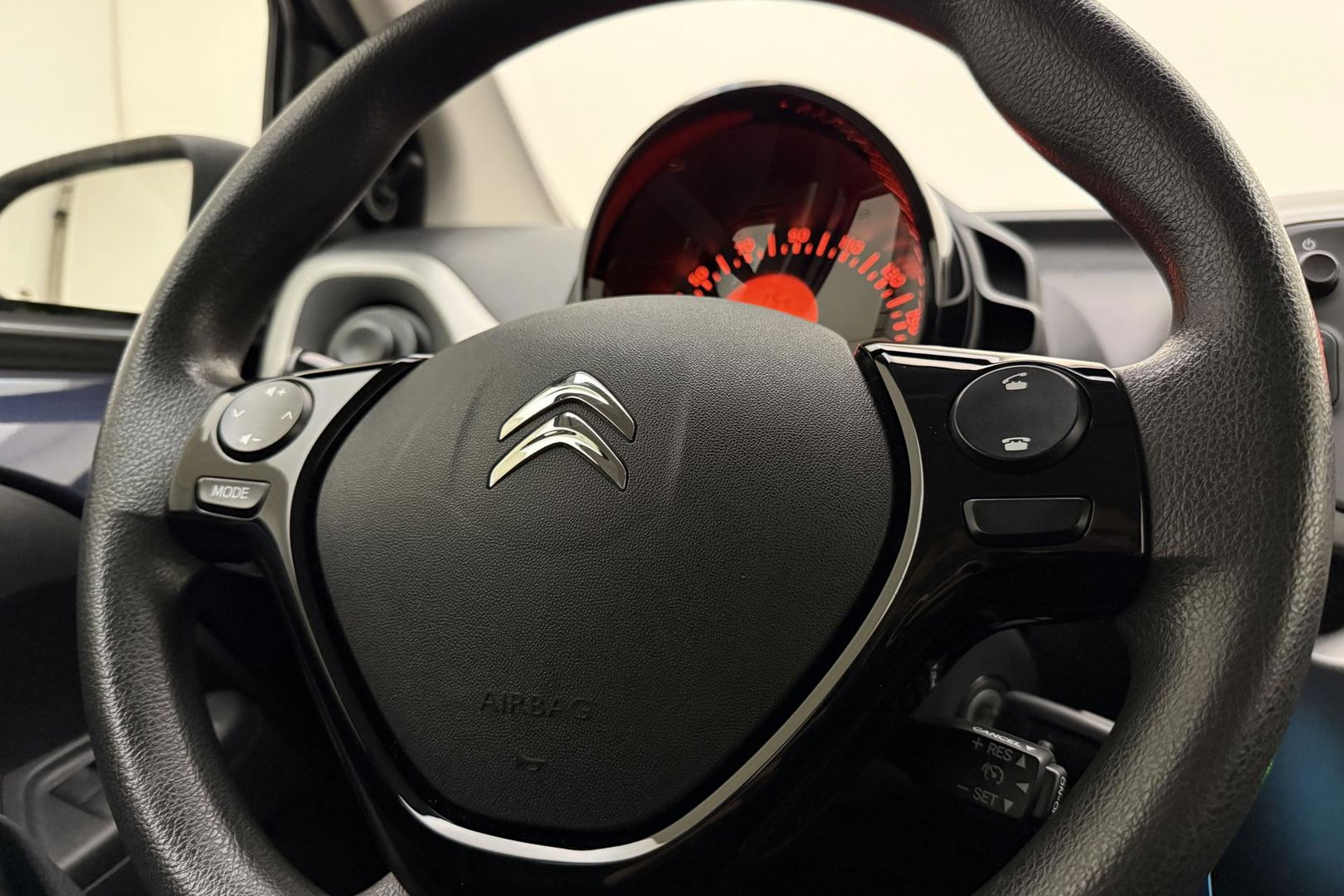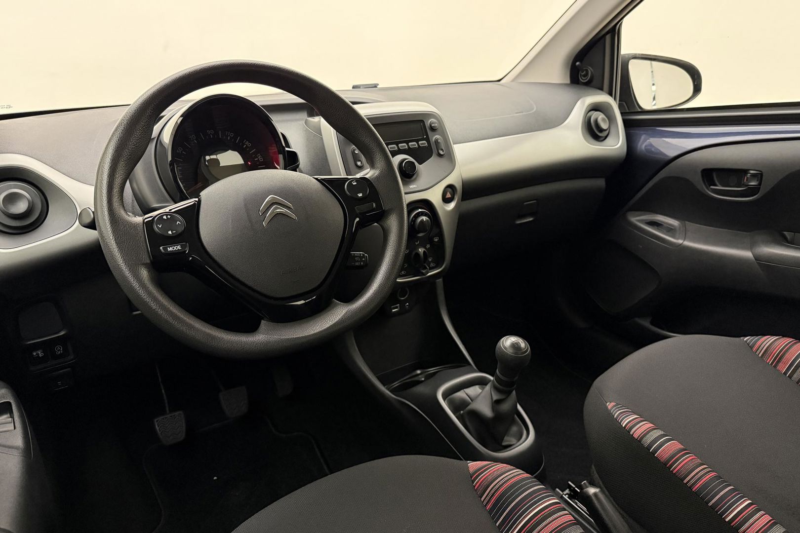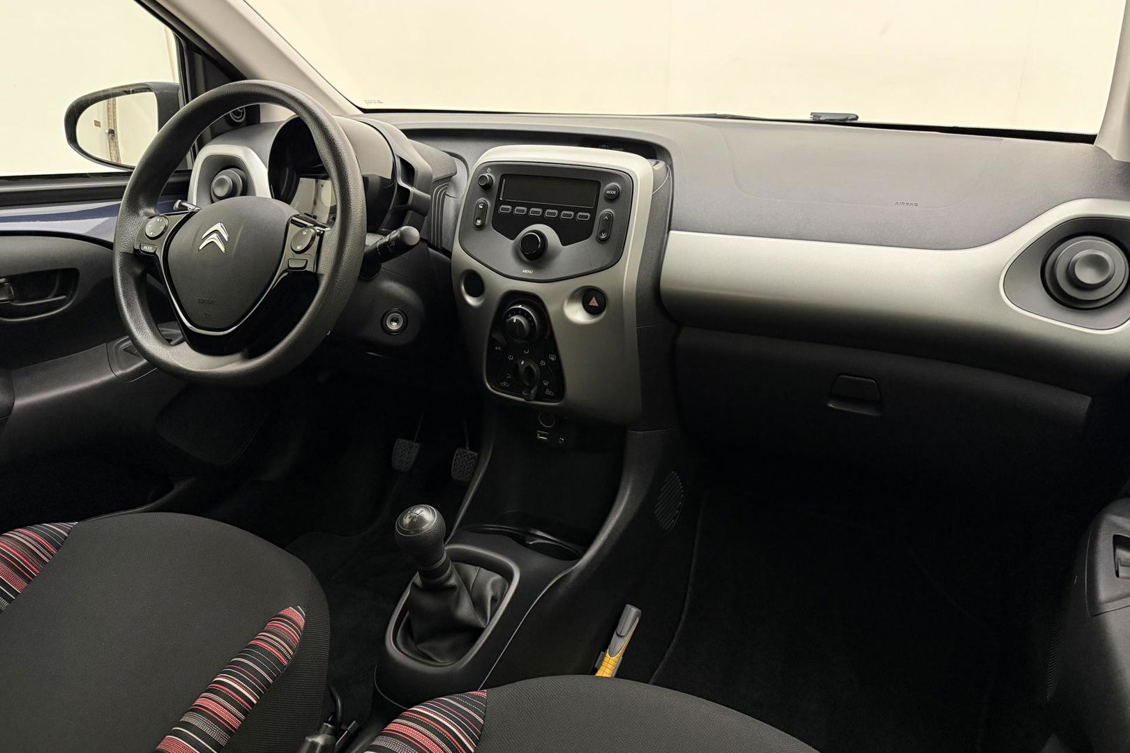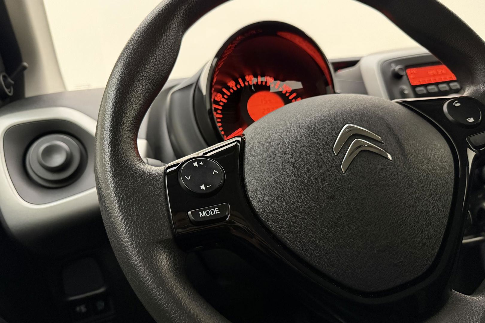 In deze C1 vindt u schakelaars op het stuur om het audiosysteem te bedienen. In een auto als deze mag u ook airconditioning verwachten. De Citroen is standaard voorzien van: centrale deurvergrendeling met afstandsbediening, boordcomputer en verstelbaar stuur.