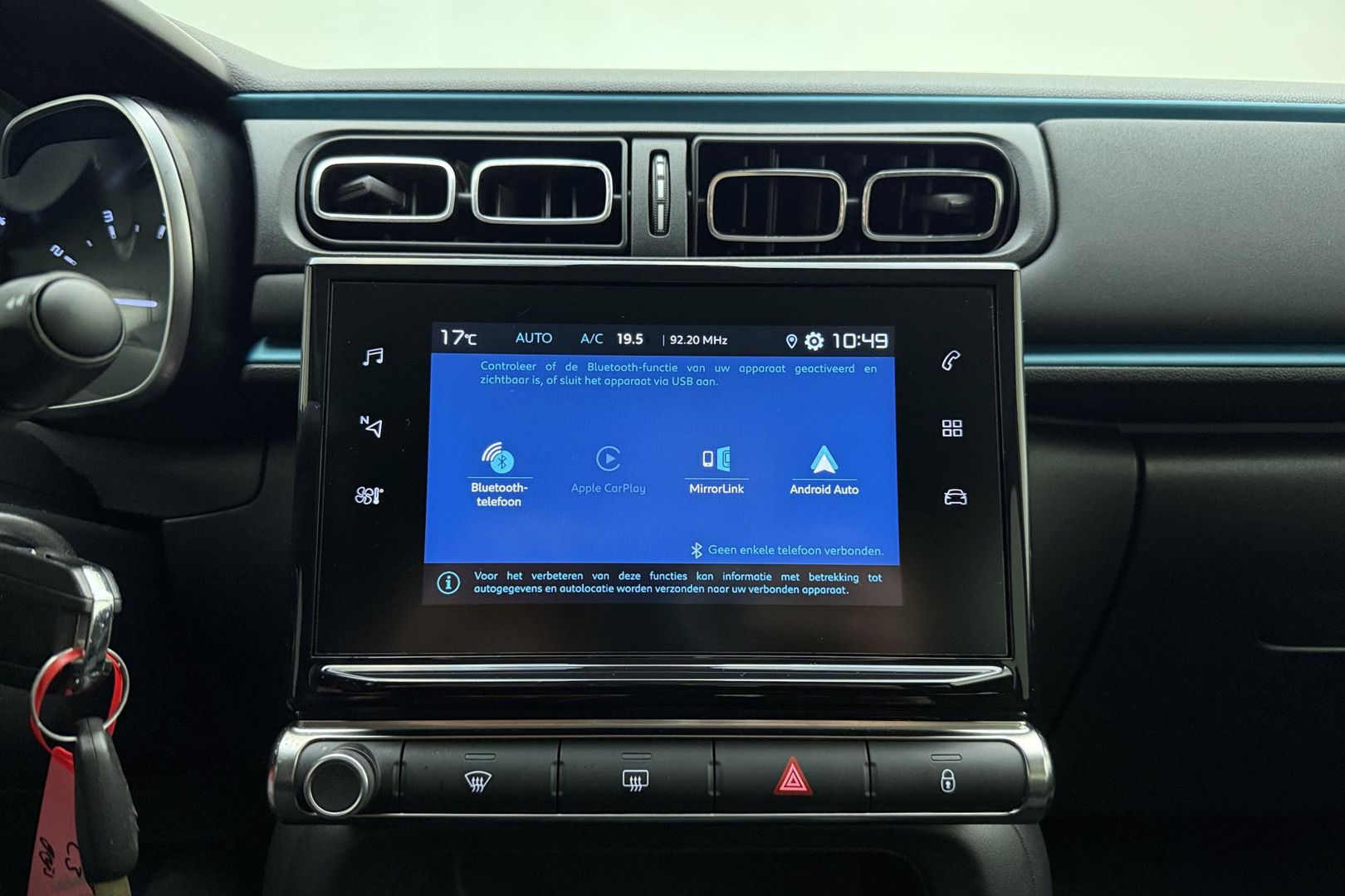 Deze Citroen C3 is voorzien van remote services. Via uw smartphone bedient u diverse functies ook op afstand en krijgt u informatie over de status van uw auto. In deze C3 vindt u schakelaars op het stuur om het audiosysteem met dab-ontvangst te bedienen. Onbedoeld snijden na het inhalen gebeurt niet meer, dankzij de achteropkomend verkeer waarschuwing. De automatische airconditioning zorgt voor een prettige binnentemperatuur. De meeste schade bij inparkeren komt van een randje of paaltje dat u even niet zag. Maar de parkeersensoren zien alles en waarschuwen op tijd. Met regensensor, cruise control, automatisch dimmende binnenspiegel, centrale deurvergrendeling met afstandsbediening, boordcomputer en verstelbaar stuur is deze Citroen helemaal compleet.