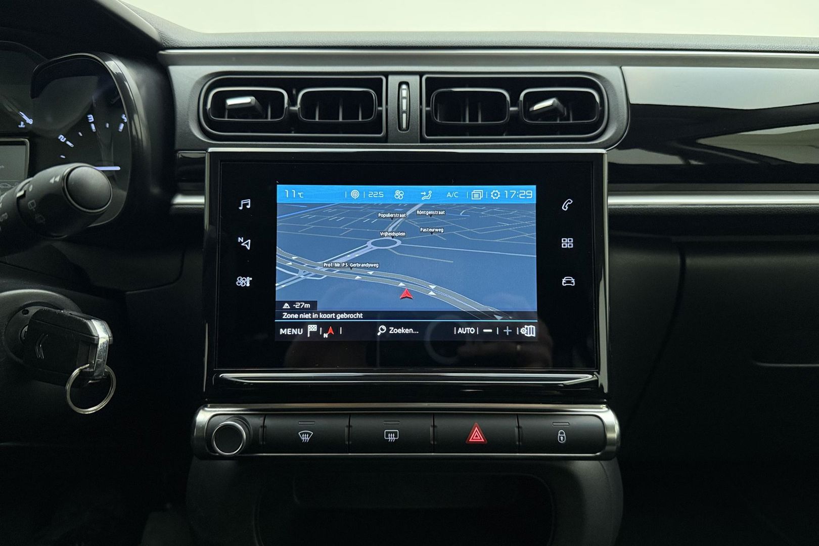 Met uw smartphone maakt u overal contact met de auto. Remote services geven direct inzicht in uiteenlopende functies en zijn op afstand te activeren. In deze C3 vindt u schakelaars op het stuur om het navigatiesysteem te bedienen en het audiosysteem met DAB-ontvangst. Aan boord van deze Citroen C3 is een achteropkomend verkeer waarschuwing voor extra veiligheid. In een auto als deze kunt u niet zonder automatische airconditioning, zodat de temperatuur altijd goed is. Met de aanwezige parkeersensoren weet u altijd zeker of het past. Met regensensor, cruise control, automatisch dimmende binnenspiegel, centrale deurvergrendeling met afstandsbediening, boordcomputer en verstelbaar stuur is deze auto helemaal compleet.
