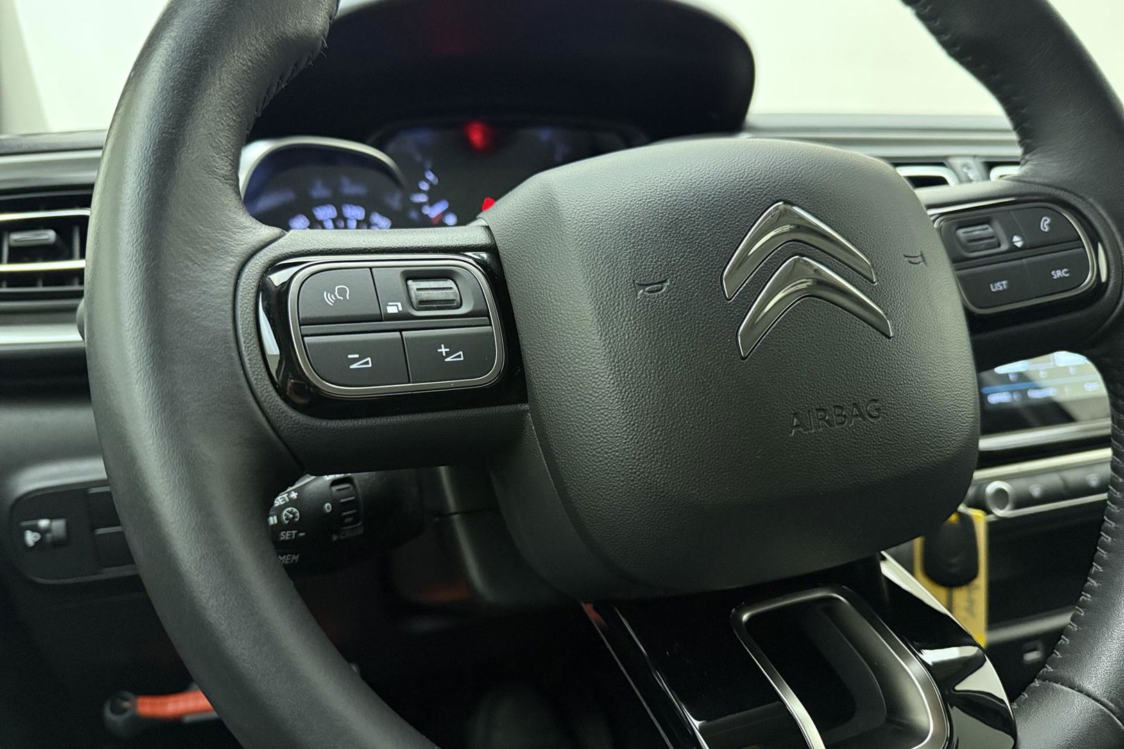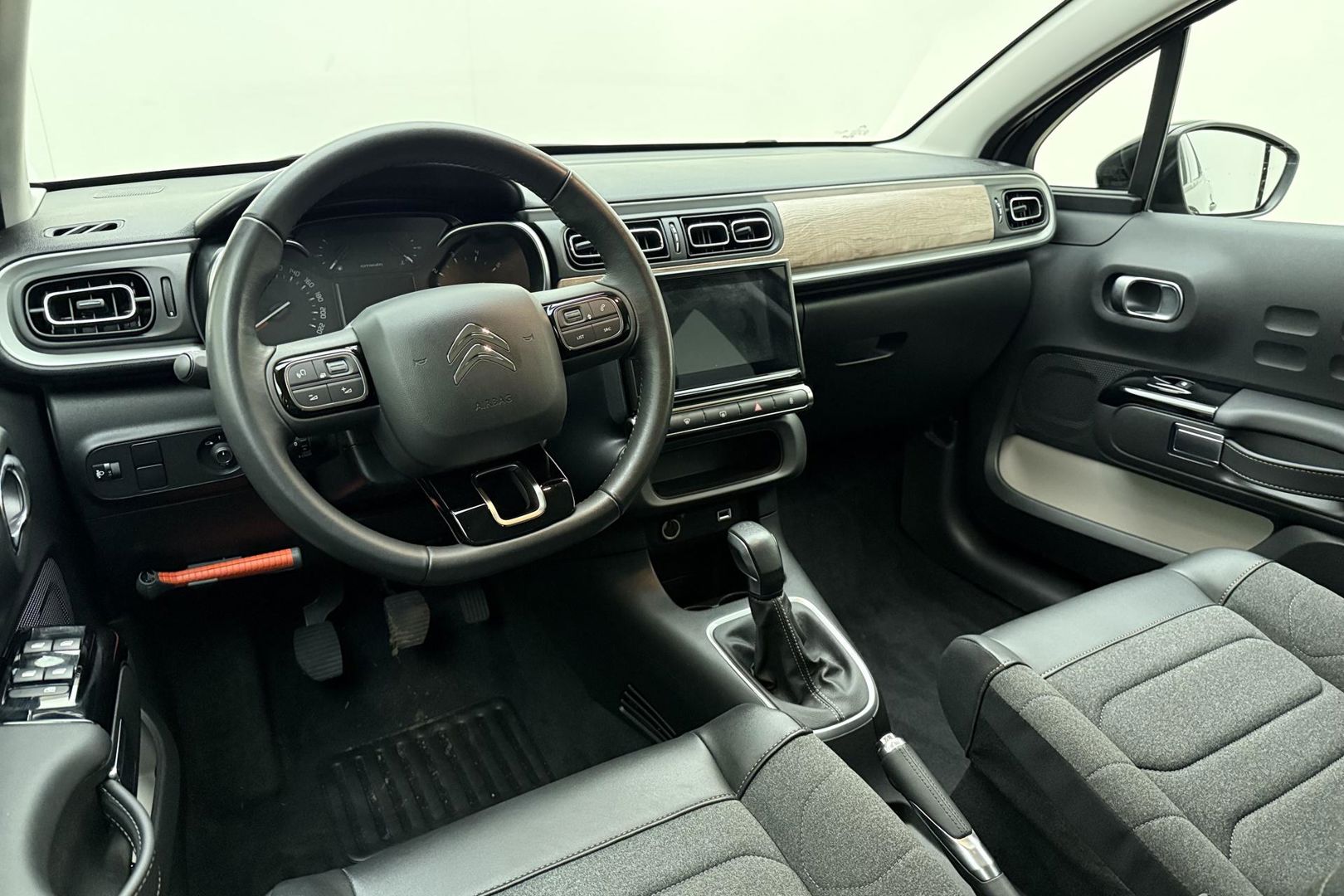 Zoals u mag verwachten van deze Citroen C3 is hij uitgerust met een reeks aan actieve veiligheidssystemen. Verkeersbord-detectie herkent verkeersborden en toont deze op het instrumentarium van de auto. Onbedoeld buiten de rijstrook raken wordt voorkomen door het Lane-keeping systeem. De sensor van het forward collision warning-systeem registreert permanent de afstand tot voorliggers en grijpt in als een botsing dreigt. In deze Citroen vinden we verder een hill hold functie, brake assist, vermoeidheidsherkenning en bandenspanningcontrolesysteem.