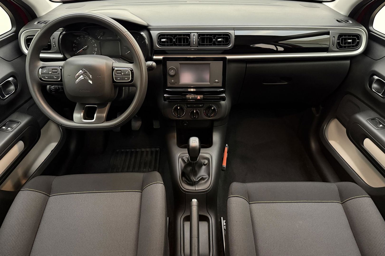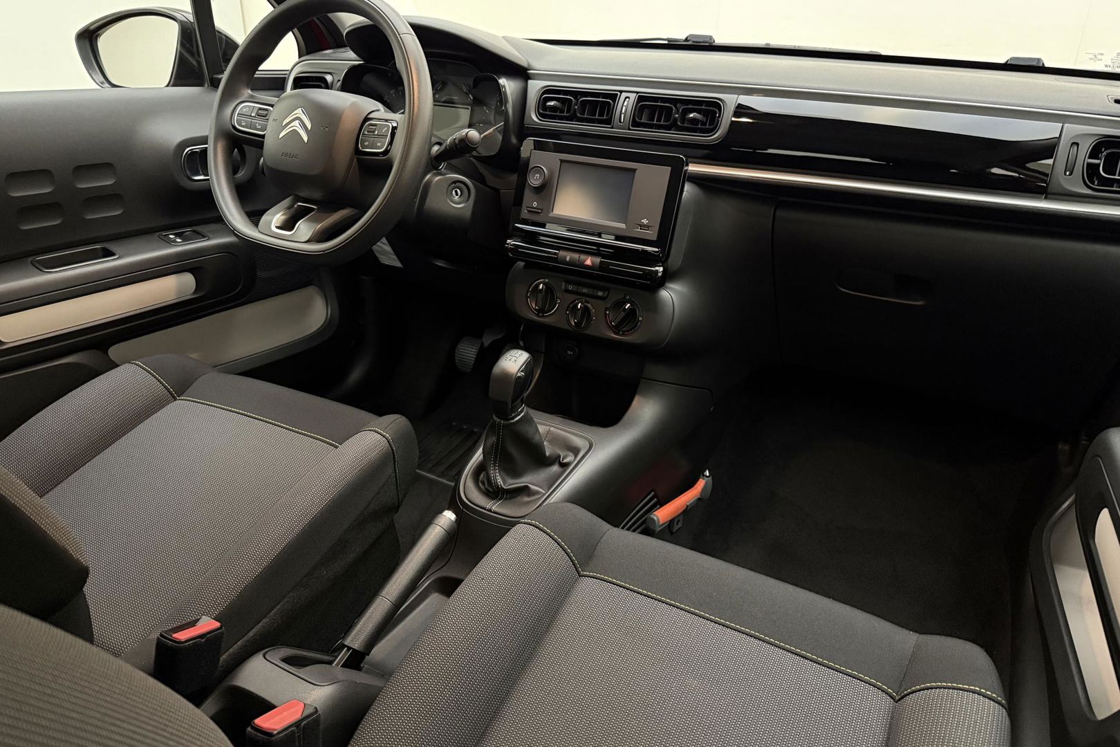 Zoals u mag verwachten van deze Citroen C3 is hij uitgerust met een reeks aan actieve veiligheidssystemen. Verkeersbord-detectie herkent verkeersborden en toont deze op het instrumentarium van de auto. Het Lane-keeping systeem zorgt voor een automatisch constante positie binnen de rijstrook. Afdwalen is uitgesloten. De Brake Assist geeft een maximale boost aan het remsysteem in een noodsituatie. Zo verkort u de remweg en verkleint u de kans op ongelukken. Dankzij veiligheidsvoorzieningen als hill hold functie en bandenspanningcontrolesysteem, bent u steeds veilig onderweg.