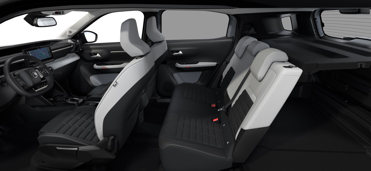 Ambiance Metropolitan Grey, incl.: Advanced Comfort Seats met 10mm extra schuimvulling en een gecapitonneerd oppervlak Bekleding 'Black Hello Knit' stof en lichtgrijze stof met ledereffect