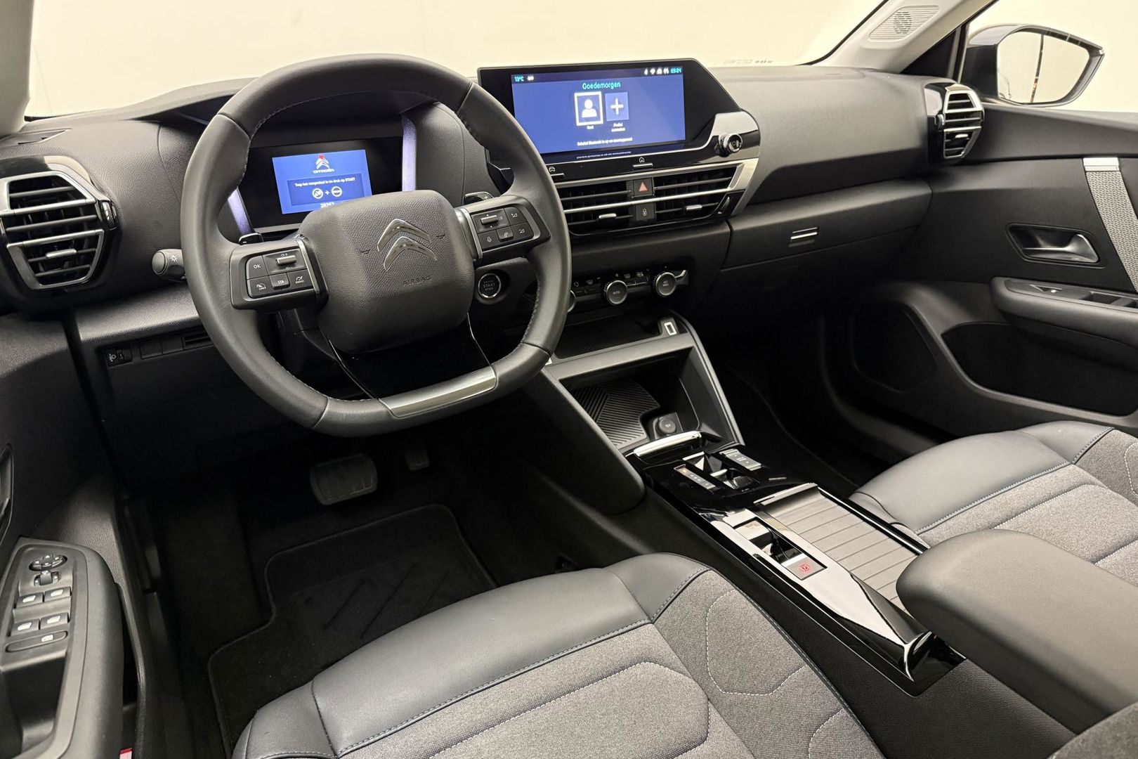 Ook achter de auto geen verrassingen bij het inparkeren. Daarvoor zorgt de achteruitrijcamera. Adaptive cruise control is veilig en comfortabel. De snelheidsregelaar houdt automatisch afstand tot het voertuig dat voor u rijdt. Als u 'm vraagt 'hoe gaat het?' geeft deze auto zelf het antwoord. Via de app op uw smartphone. U checkt de meters waar u maar wilt, of activeert diverse functies alvast. Laat u onderweg niet afleiden, de bediening van het audiosysteem en ook het full map navigatiesysteem gaat met knoppen op het stuur en met spraak. Natuurlijk is de audio-installatie voorzien van DAB-ontvangst. Omdat u nu eenmaal niet overal ogen heeft, is deze Citroen C4 voorzien van een achteropkomend verkeer waarschuwing die registreert wanneer de afstand tot uw achterligger te krap is. Ook automatische airconditioning, regensensor, automatisch dimmende binnenspiegel, lederen stuur, centrale deurvergrendeling met afstandsbediening en lederen versnellingspook zijn aan boord.
