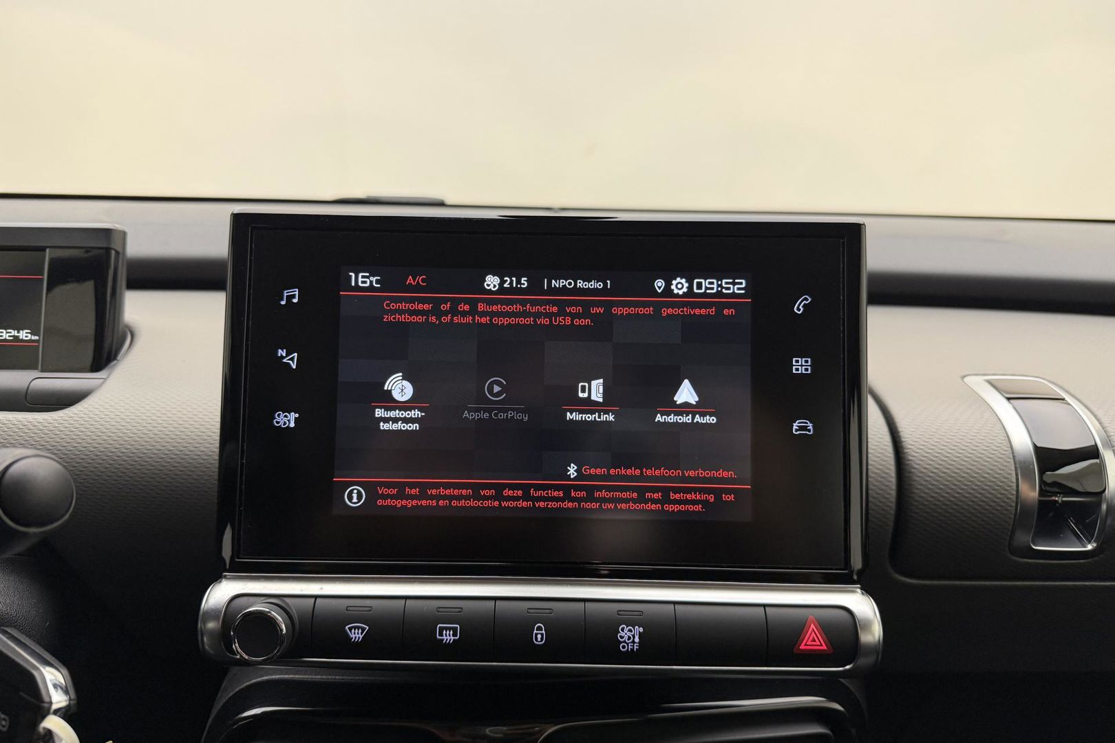 Zoals u mag verwachten van deze Citroen C4 Cactus is hij uitgerust met een reeks aan actieve veiligheidssystemen. Een kortere remweg verkleint de kans op een aanrijding. Brake assist helpt actief mee tijdens een noodstop. Ook helpen het hill hold functie en bandenspanningcontrolesysteem, uw rit tot een veilige rit te maken.