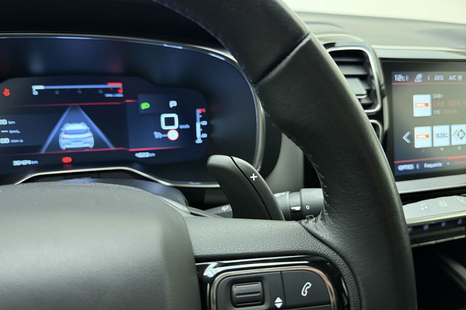 U wordt geïntroduceerd tot de digitale wereld van mobiliteit waarop alles wat u wenst wordt geprojecteerd op het digitale dashboard. Hoeveel ruimte heeft u nog bij het inparkeren? De achteruitrijcamera brengt helder in beeld wat zich achter de auto bevindt en geeft een geluidssignaal. Uw smartphone wordt een dashboard, met alle functies in beeld. Dankzij Connected Services en de speciale app. Een goede veiligheidsvoorziening is de spraakbediening en stuurbediening voor belangrijke functies. Het audiosysteem biedt glasheldere geluidskwaliteit dankzij DAB-ontvangst. Bij de luxe van deze auto hoort ook automatische airconditioning. Natuurlijk behoren regensensor, cruise control, keyless entry, automatisch dimmende binnenspiegel, lederen stuur en centrale deurvergrendeling met afstandsbediening ook tot de uitrusting van deze complete auto.