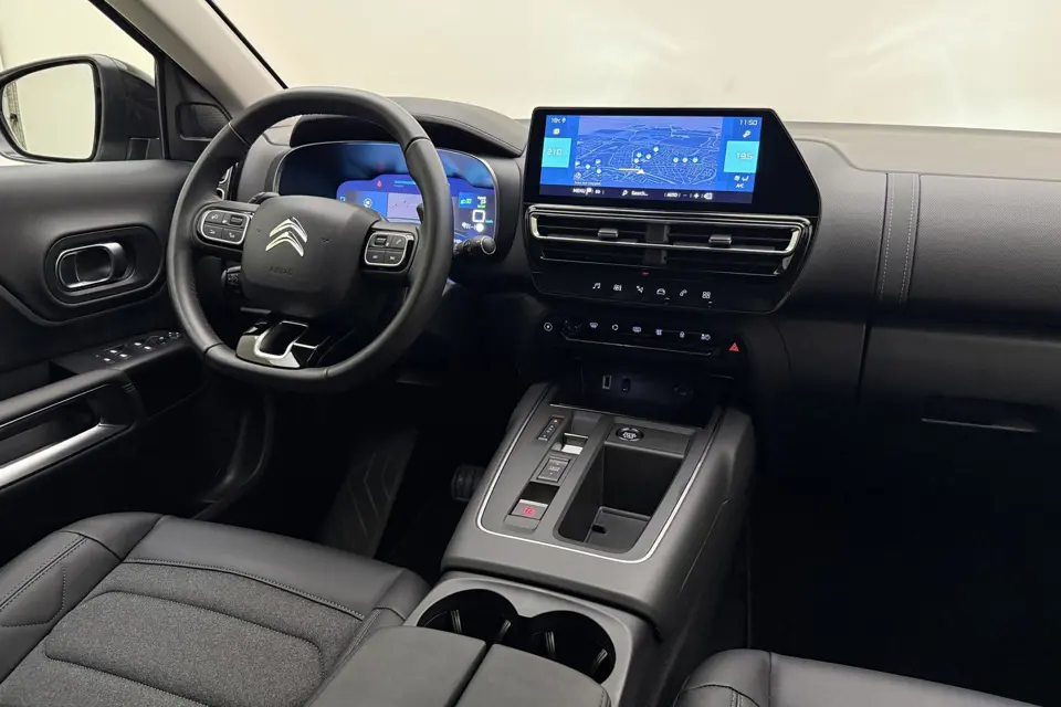 Modern design en bijzondere techniek bepalen de kwaliteiten van de hybride Citroen C5 Aircross. Elektrisch? Benzine? Bij deze Citroen C5 Aircross kan het allebei. De hybride motor biedt de ideale keuzecombinatie. Neem plaats achter het stuur en ervaar de weldaad van de comfortstoelen. Bij de zeer complete uitrusting van deze auto behoren ook 18 inch lichtmetalen velgen, LED koplampen, adaptief dempingsysteem, geluidsisolerende ramen, LED-achterlichten en verstelbare lendensteunen.