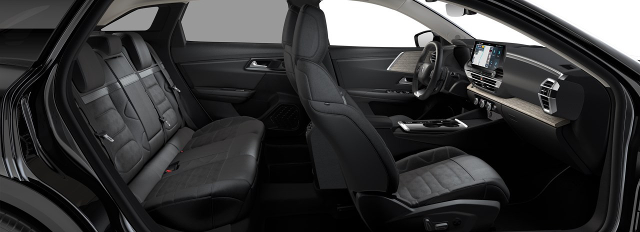 Bekleding leder ‘Hype Black’ (grijs/zwart gecombineerd met ‘Eiffel Grey’ band en ‘Graphite Grey’ accentstiksles)