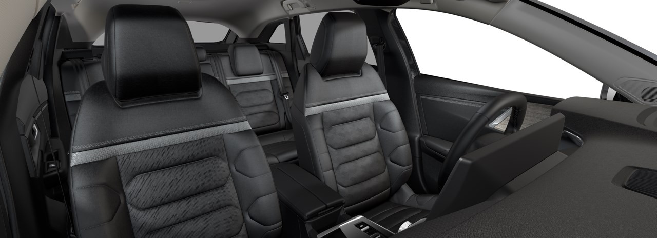 Middenarmsteun, dashboard- en portierpanelen (deels) bekleed met kunstleder ‘Black’