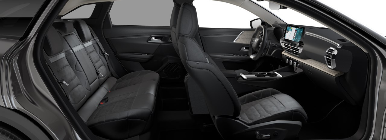 Bekleding leder ‘Hype Black’ (grijs/zwart gecombineerd met ‘Eiffel Grey’ band en ‘Graphite Grey’ accentstiksles)