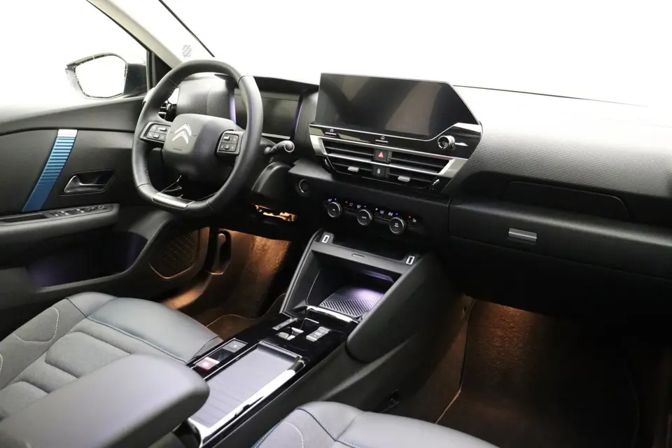 De nieuwste veiligheidssystemen komen in deze Citroen Ë-C4 samen. U verliest de weg geen seconde uit het oog. De dashboardinfo wordt in uw zichtveld geprojecteerd door de head-up display. In het instrumentarium kunt u bovendien de verkeersborden zien die u onderweg tegenkomt. Zo helpt deze Citroen u om veiliger te rijden. Deze Citroen Ë-C4 is ook behulpzaam als het gaat om een rechte koers. Het Lane-keeping systeem signaleert en corrigeert als u onbedoeld de rijstrooklijnen dreigt te overschrijden. Verder is deze auto uitgerust met dodehoekdetectie, forward collision warning system, hill hold functie en vermoeidheidsherkenning.