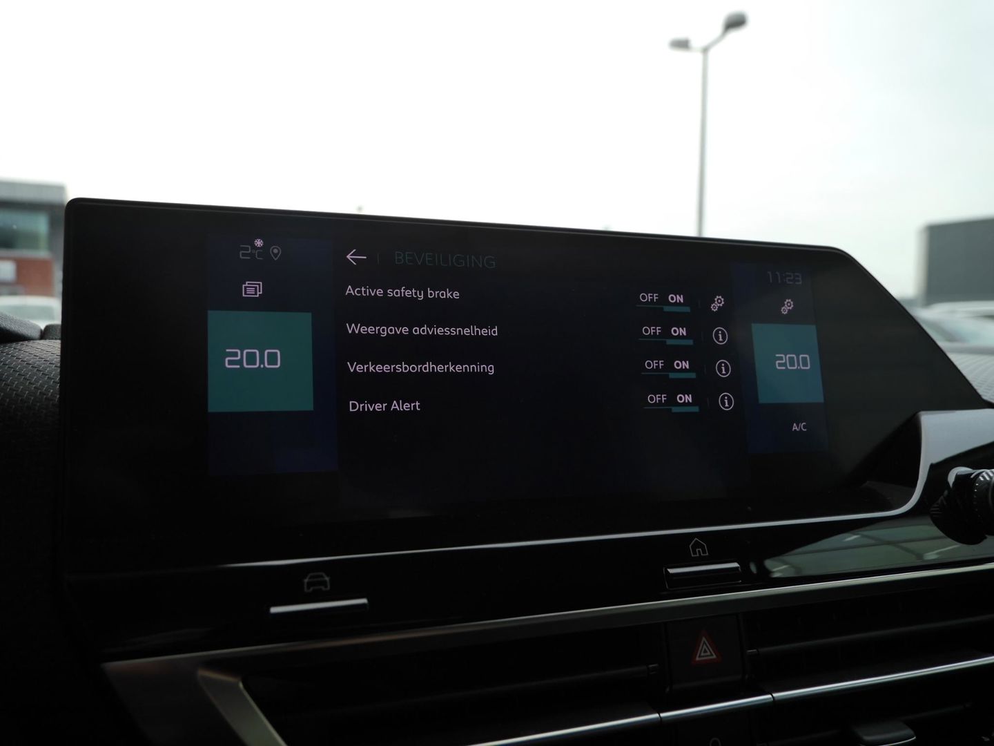 In de Citroen Ë-C4 heeft uw veiligheid en die van uw omgeving prioriteit. U rijdt ook veiliger omdat deze auto voor u de verkeersborden langs de weg kan lezen. De belangrijkste borden worden op uw instrumentarium geprojecteerd, zodat u ze niet kunt missen. Deze Citroen Ë-C4 is ook behulpzaam als het gaat om een rechte koers. Het Lane-keeping systeem signaleert en corrigeert als u onbedoeld de rijstrooklijnen dreigt te overschrijden. Botsingen met een voorligger gebeuren relatief vaak. De forward collision warning slaat tijdig alarm als dat risico ontstaat, zodat u kunt ingrijpen. Ook helpen het head-up display, hill hold functie, brake assist, vermoeidheidsherkenning en bandenspanningcontrolesysteem, uw rit tot een veilige rit te maken.