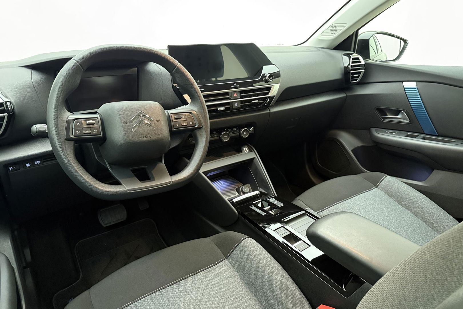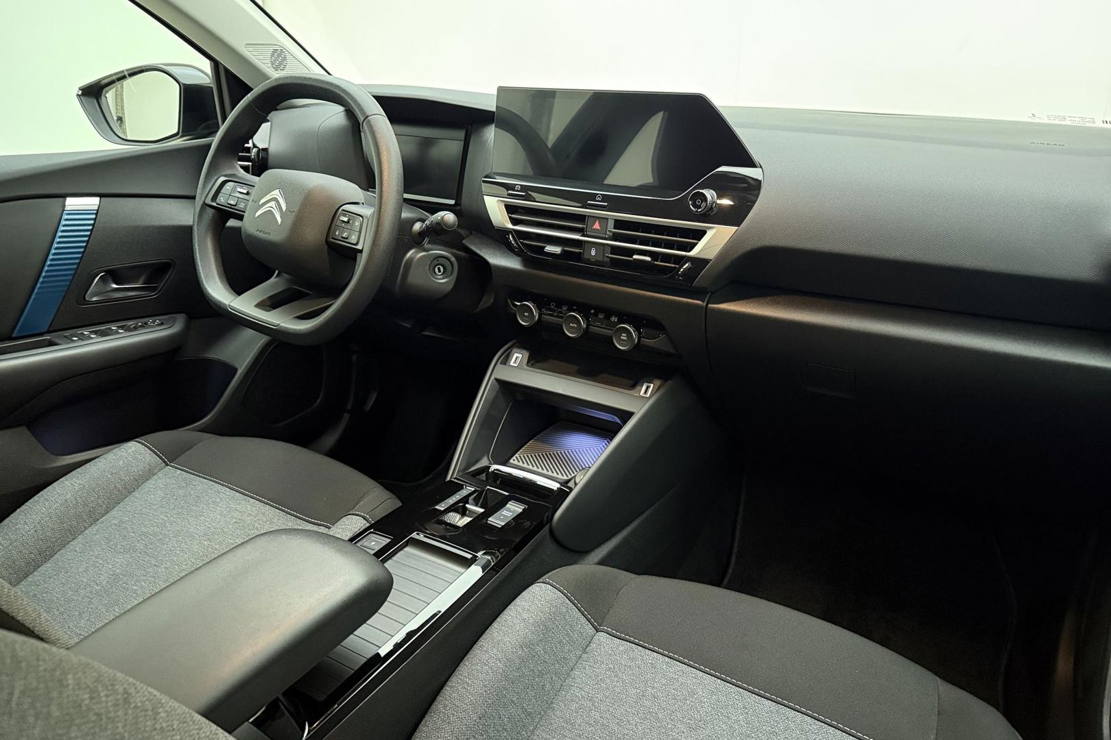 Dankzij het digitale dashboard in deze auto kan u de interface van uw cockpit personaliseren. Navigatie, onderhoudsstatus, vergrendeling, audio... de mogelijkheden van remote services zijn haast oneindig. Ook deze auto laat zich bedienen en analyseren via uw smartphone! In deze Ë-C4 vindt u schakelaars op het stuur om het audiosysteem met dab-ontvangst te bedienen. Te weinig afstand tussen u en de achterligger? De sensoren registreren het direct en de achteropkomend verkeer waarschuwing geeft een signaal. Tot de standaard uitrusting van deze auto hoort ook automatische airconditioning. Ook is de Citroen uitgerust met: regensensor, cruise control, centrale deurvergrendeling met afstandsbediening en verstelbaar stuur.
