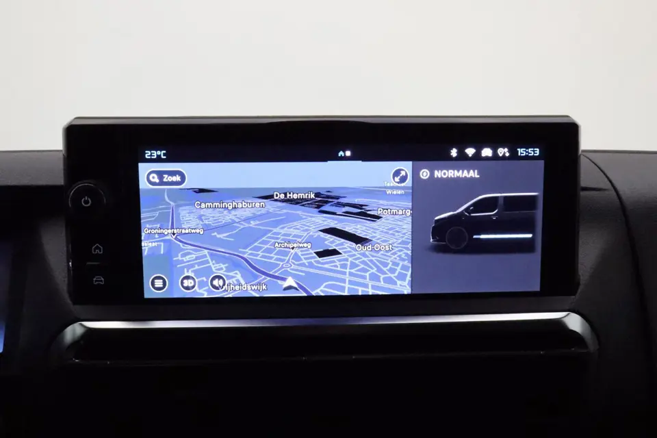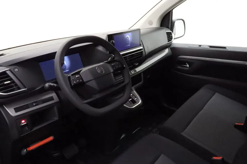 Aan boord van deze Citroen houden verschillende geavanceerde systemen voor u de weg in de gaten. Ze waarschuwen u voor noodsituaties en kunnen in een aantal gevallen ook zelf ingrijpen. In het instrumentarium kunt u bovendien de verkeersborden zien die u onderweg tegenkomt. Zo helpt deze Citroen u om veiliger te rijden. Deze Citroen ë-Jumpy is ook behulpzaam als het gaat om een rechte koers. Het Lane-keeping systeem signaleert en corrigeert als u onbedoeld de rijstrooklijnen dreigt te overschrijden. Het laatste wat u wilt is dat u achter het stuur indommelt. Om dat te voorkomen is deze auto uitgerust met vermoeidheidsherkenning. In deze Citroen vinden we verder een dodehoekdetectie, hill hold functie, brake assist en bandenspanningcontrolesysteem.