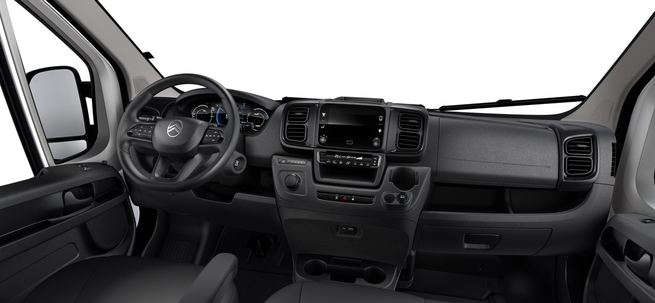 Centraal geplaatst open opbergvak inclusief bekerhouders (flessen tot 0,75ltr) en ruimte voor kleine spullen zoals smartphones en een USB aansluiting (USB aansluiting alleen indien een radio wordt besteld)