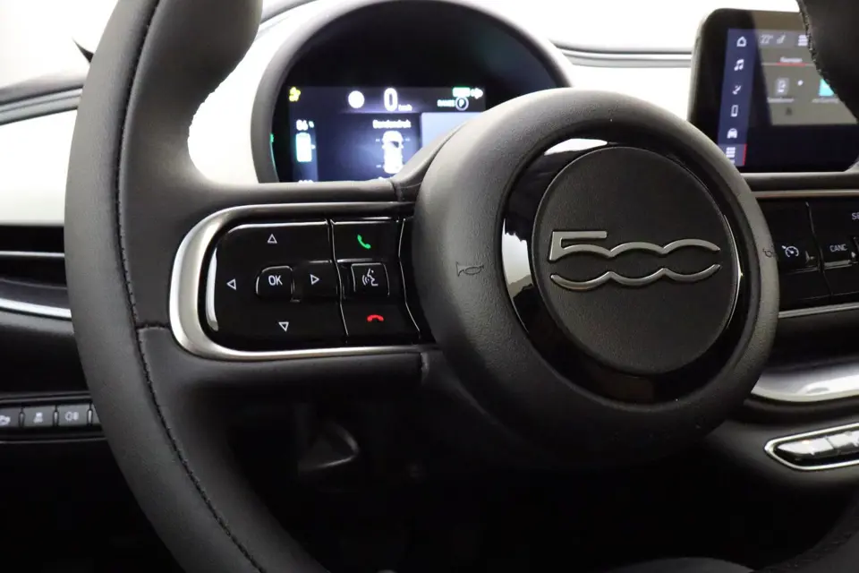 Alle functies voor een veilige en zuinige rit worden overzichtelijk weergegeven op het digitale dashboard. De hoogwaardige achteruitrijcamera en het display met hoge resolutie zorgen dat helemaal niets u meer ontgaat van wat er achter de auto gebeurt. Deze Fiat 500 is voorzien van remote services. Via uw smartphone bedient u diverse functies ook op afstand en krijgt u informatie over de status van uw auto. De automatische airconditioning zorgt onder alle omstandigheden voor een prettige temperatuur. Even muten, een andere zender of track kiezen? Geen gerommel, het gaat moeiteloos met de audiobediening op het stuur. De Fiat is standaard voorzien van: DAB ontvangst, regensensor, cruise control, sportstuurwiel, centrale portiervergrendeling en boordcomputer.