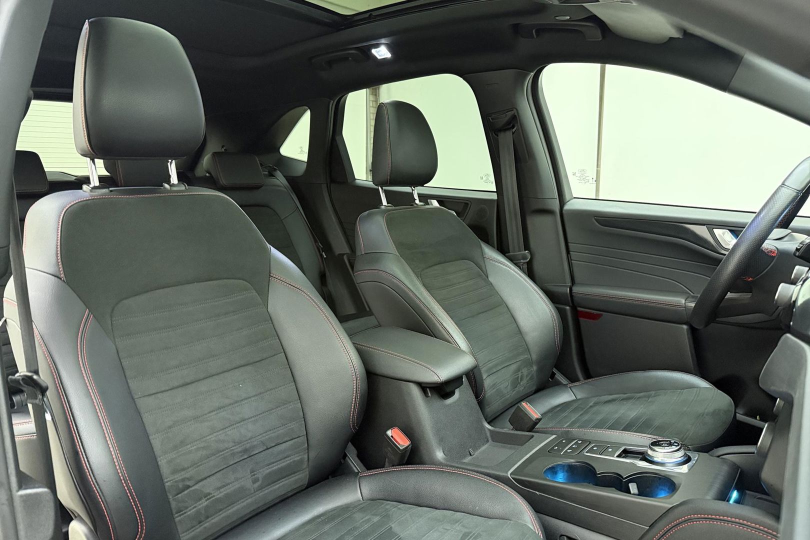 Alle technologie in de Ford Kuga is er op gericht om uw rit veilig en gemakkelijk te laten verlopen. Twijfelt u nog tussen rijden op benzine of elektrisch? Niet nodig. Deze hybride Ford Kuga doet het allebei. Even een paar wel héél aantrekkelijke pluspunten van deze fraaie auto: een elektrisch bediend glazen panorama dak, een elektrisch bedienbare achterklep en een prachtig lederen interieur! Ongeacht hoe koud het buiten is, het verwarmbare stuurwiel samen met de verwarmbare voorstoelen en achterbank, zorgt ervoor dat iedereen in de auto zich snel opwarmt. Rijden met pit? Geen punt! De sportstoelen geven steun en stevigheid! Ook is de auto voorzien van: 18 inch lichtmetalen velgen, LED koplampen, geluidsisolerende ramen, in delen neerklapbare achterbank, LED-achterlichten en sportuitlaat.