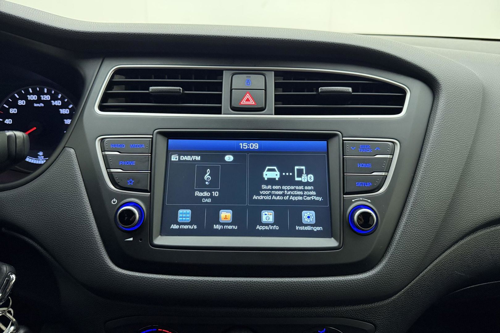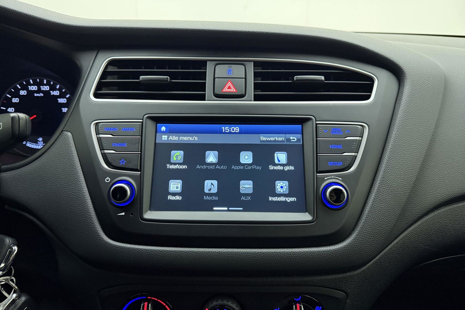 Altijd achter zicht, nooit meer nekkramp! De achteruitrijcamera maakt het supermakkelijk. Onderweg geniet u van de kwaliteit van het audio-installatiesysteem met DAB-ontvangst. De bediening is gemakkelijk via knoppen op het stuur of via spraak. De achteropkomend verkeer waarschuwing geeft een signaal als degene achter u te dicht op u zit. Ook handig en veilig bij het wisselen van rijbaan. Dankzij automatische airconditioning is het interieur behaaglijk warm of verfrissend koel. Het luxeniveau in deze Hyundai is niet alleen gericht op comfort, maar ook op uw veiligheid. Tal van sensoren helpen u om de omgeving in de gaten te houden. De automatisch inschakelbare verlichting zorgt dat automatisch de verlichting wordt ingeschakeld als het donker wordt, wat bijvoorbeeld in tunnels erg handig is. En de regensensor zet de ruitenwissers aan zonder dat u eraan hoeft te denken. Natuurlijk behoren cruise control, automatisch dimmende binnenspiegel, lederen stuur, centrale deurvergrendeling met afstandsbediening, boordcomputer en lederen versnellingspook ook tot de uitrusting van deze complete auto.