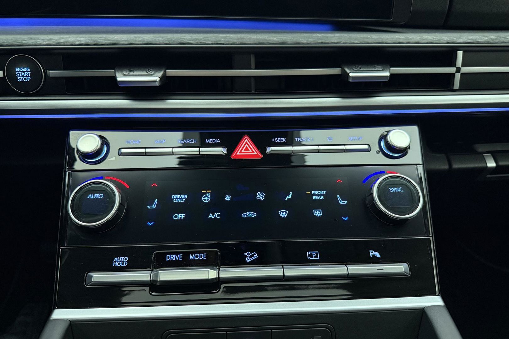 De Hyundai Santa Fe is ook voorzien van ADAS. Deze Advanced Driver Assistence Systems fungeren als extra ogen en oren: ze houden voor u de weg in de gaten en grijpen in wanneer dat nodig is. Snelheid en andere benodigde info hoeft u niet meer te bekijken op het dashboard. De head-up display projecteert de gegevens in de voorruit. In het instrumentarium kunt u bovendien de verkeersborden zien die u onderweg tegenkomt. Zo helpt deze Hyundai u om veiliger te rijden. Mooi binnen de lijnen van de rijstrook blijven? Het Lane-keeping systeem helpt altijd een handje. U bent mede dankzij dodehoekdetector detectiesysteem, hill hold functie, autonoom remsysteem en bandenspanningcontrolesysteem steeds veilig onderweg.