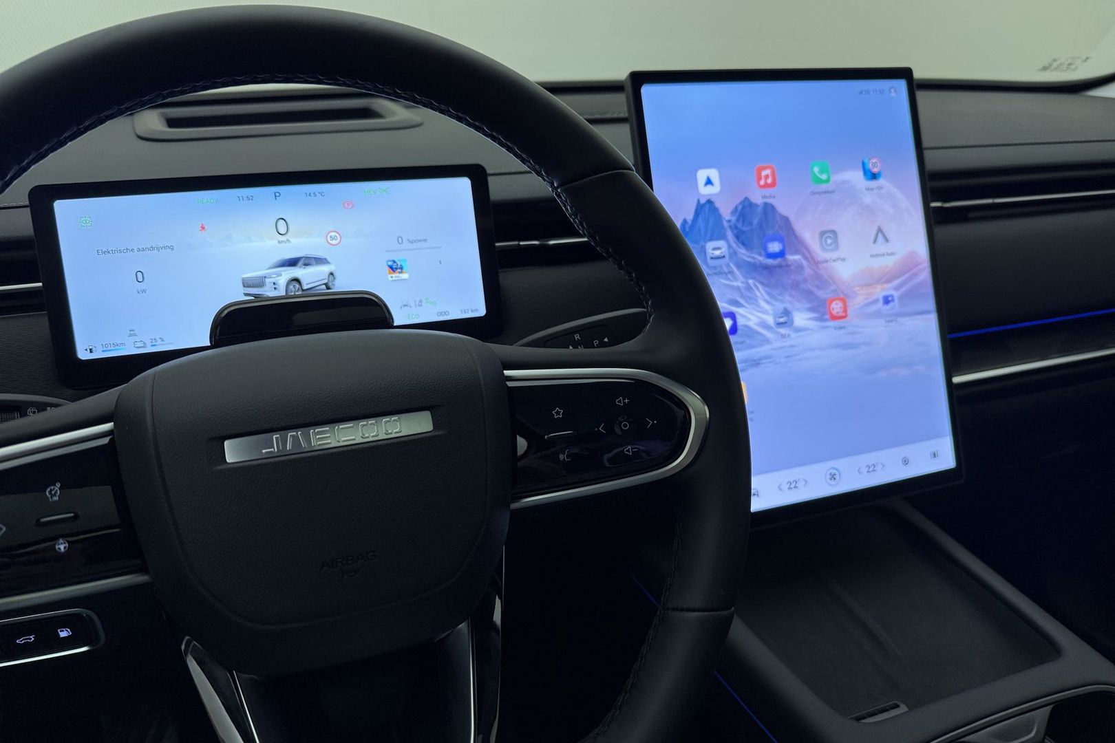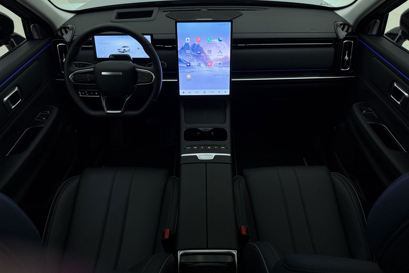 Zoals u mag verwachten van deze Jaecoo 7 is hij uitgerust met een reeks aan actieve veiligheidssystemen. U hoeft onderweg uw hoofd nooit te draaien of uw blik te verplaatsen om dashboard-info af te lezen. De head-up display projecteert alles op de voorruit. U kunt rijden als een jachtpiloot. Een camera houdt de juiste koers binnen de rijstrook in de gaten en het Lane-keeping systeem corrigeert bij afwijkingen. De forward collision warning geeft een botswaarschuwing als een aanrijding dreigt met een voorligger. U bent mede dankzij dodehoekdetectie, hill hold functie, brake assist, vermoeidheidsherkenning en bandenspanningcontrolesysteem steeds veilig onderweg.
