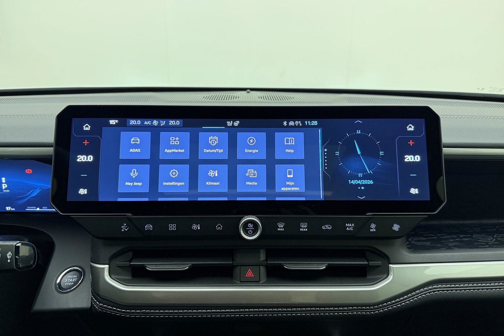 Het digitale dashboard geeft een nauwkeurig en makkelijk overzicht van alle belangrijke functies. De achteruitrijcamera levert eersteklas parkeerservice. U weet precies hoeveel ruimte u nog heeft, in beeld en geluid. Hoe is het met de banden, de accu en andere onderdelen? Connected Services maakt het inzichtelijk, 24/7 via de app. Met het navigatiesysteem kiest u de snelste route naar uw eindbestemming. Het comfort wordt verhoogd door de aanwezige automatische airconditioning. De Jeep is standaard voorzien van: draadloos opladen, keyless entry en automatisch dimmende binnenspiegel.