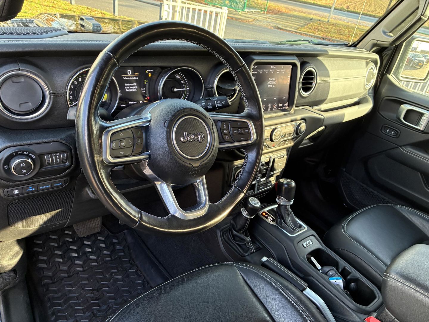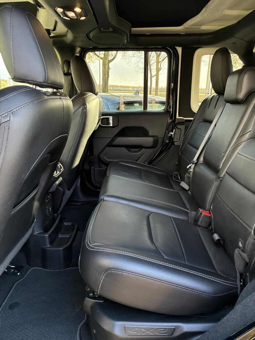 U zoekt een betrouwbare auto met uitstekende rijkwaliteiten? Dan is deze Jeep Wrangler Unlimited Plug-in Hybrid een geweldige keuze! Rijden met deze Jeep Wrangler Unlimited Plug-in Hybrid is energiezuinig, want de hybride motor combineert brandstof met elektriciteit. Minder vaak langs de pomp, dus dat scheelt! Lederen bekleding is een smaakvolle en comfortverhogende optie. Lekker hoor, die verwarmbare voorstoelen. Helemaal op koude dagen. Koude handen? Da's voorbij met het verwarmd stuurwiel. Pak aan! Bij de uitrusting van deze Jeep horen onder meer 18 inch lichtmetalen velgen, LED koplampen, in delen neerklapbare achterbank, treeplanken, LED-achterlichten en verstelbare lendensteunen.