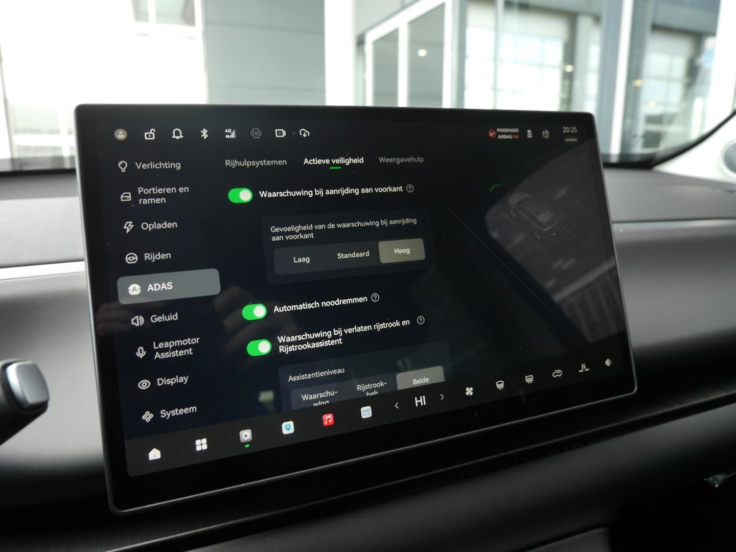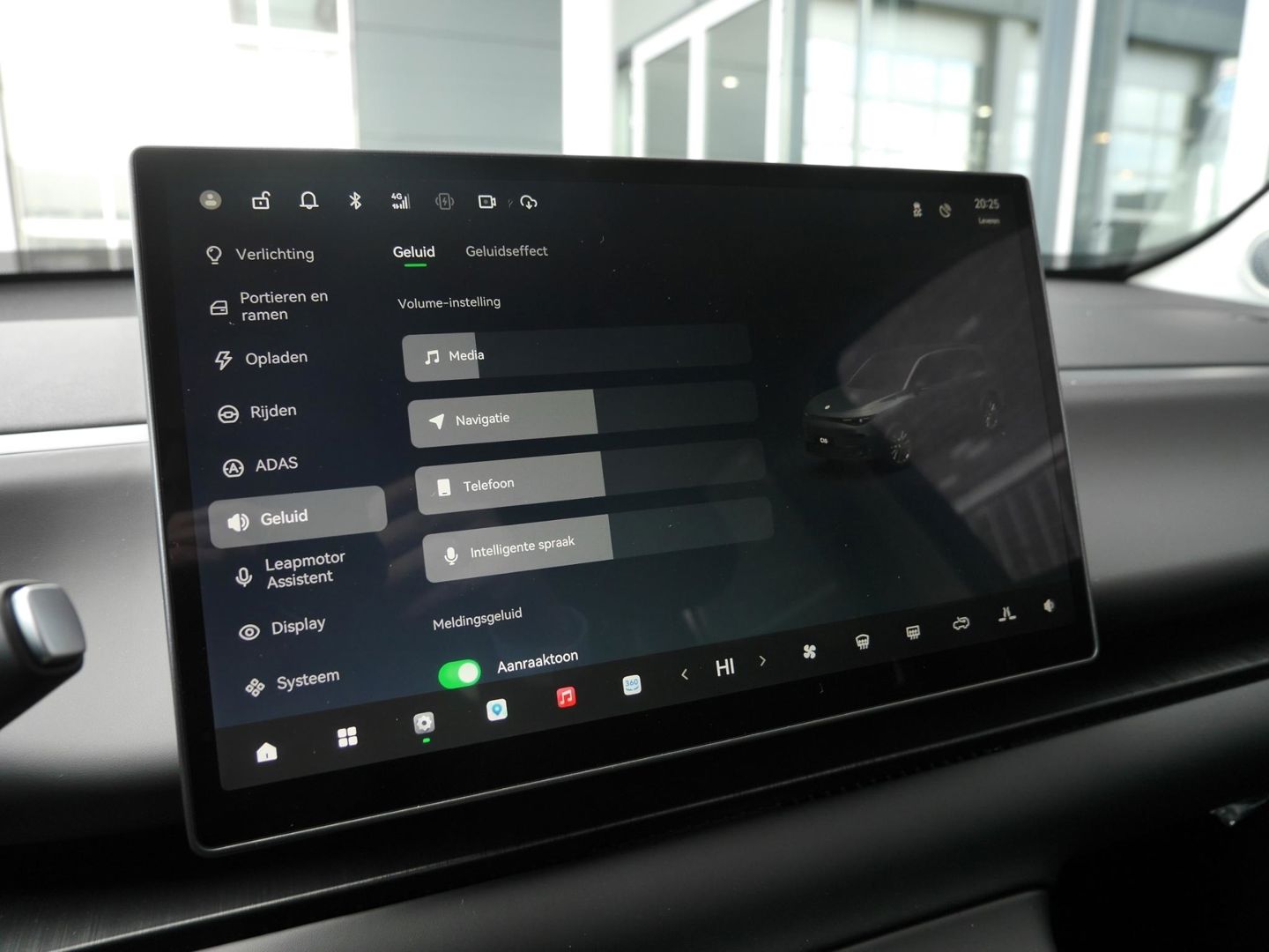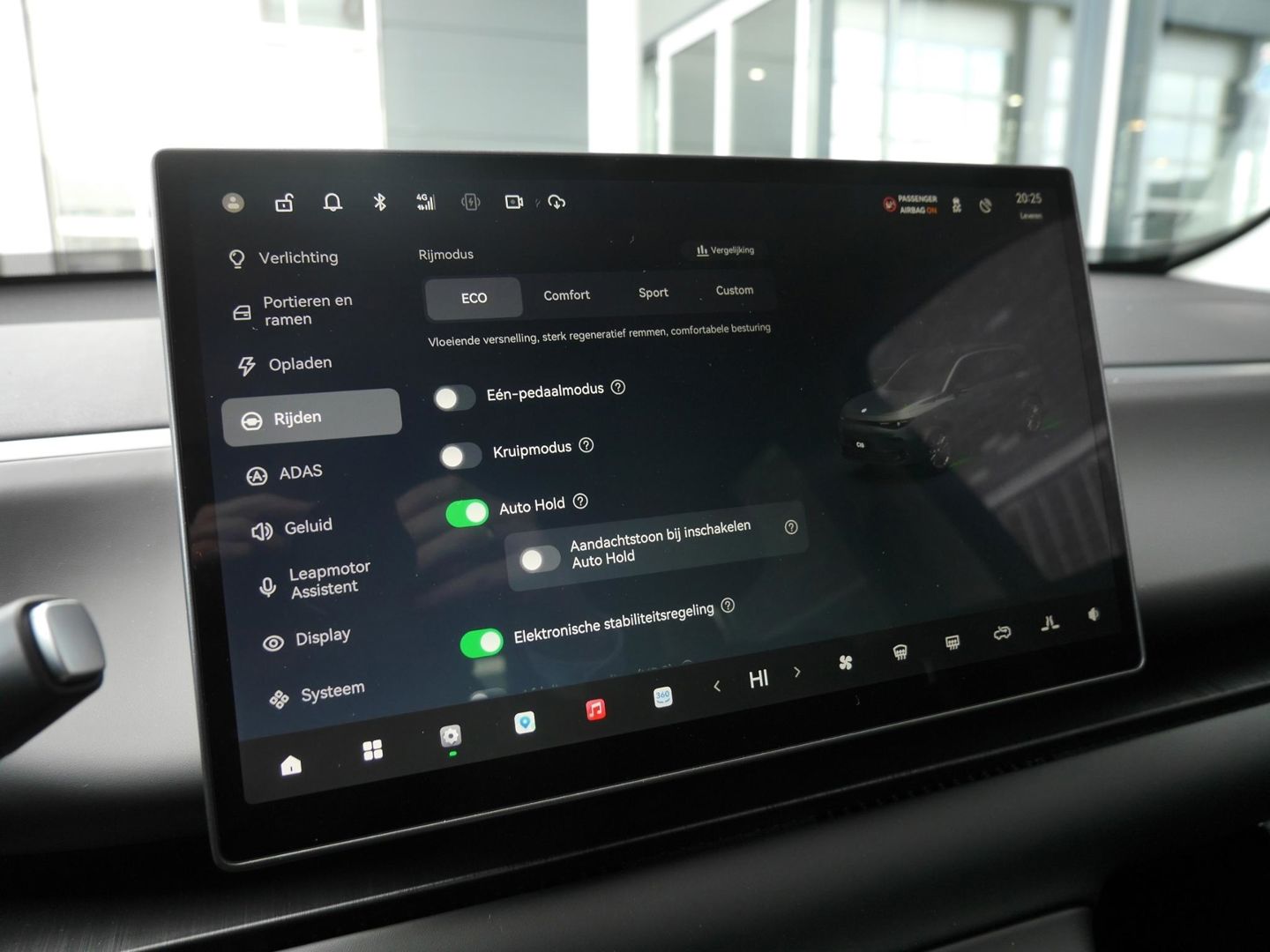 Het digitale dashboard zorgt voor een super functionele display van reisinformatie. De functie van de 360 graden camera in deze auto is om u een totaaloverzicht van de omgeving te geven, ongeacht hoe smal de straat of parkeerplek is. Adaptive cruise control is een comfortabele en veilige optie. Het systeem reguleert de snelheid en houdt automatisch afstand tot uw voorligger. Zoals u van zo'n jonge auto mag verwachten, zijn hier ook de geavanceerde remote services aanwezig. Simpelweg met een app op uw smartphone controleert u op afstand de status van de auto en bedient u diverse functies. In deze C10 vindt u niet alleen schakelaars op het stuur om het full map navigatiesysteem te bedienen en het audio-installatiesysteem met DAB-ontvangst, maar er is ook spraakbediening. Met achteropkomend verkeer waarschuwing, electronic climate control, draadloos opladen en centrale deurvergrendeling met afstandsbediening is deze Leapmotor helemaal compleet.