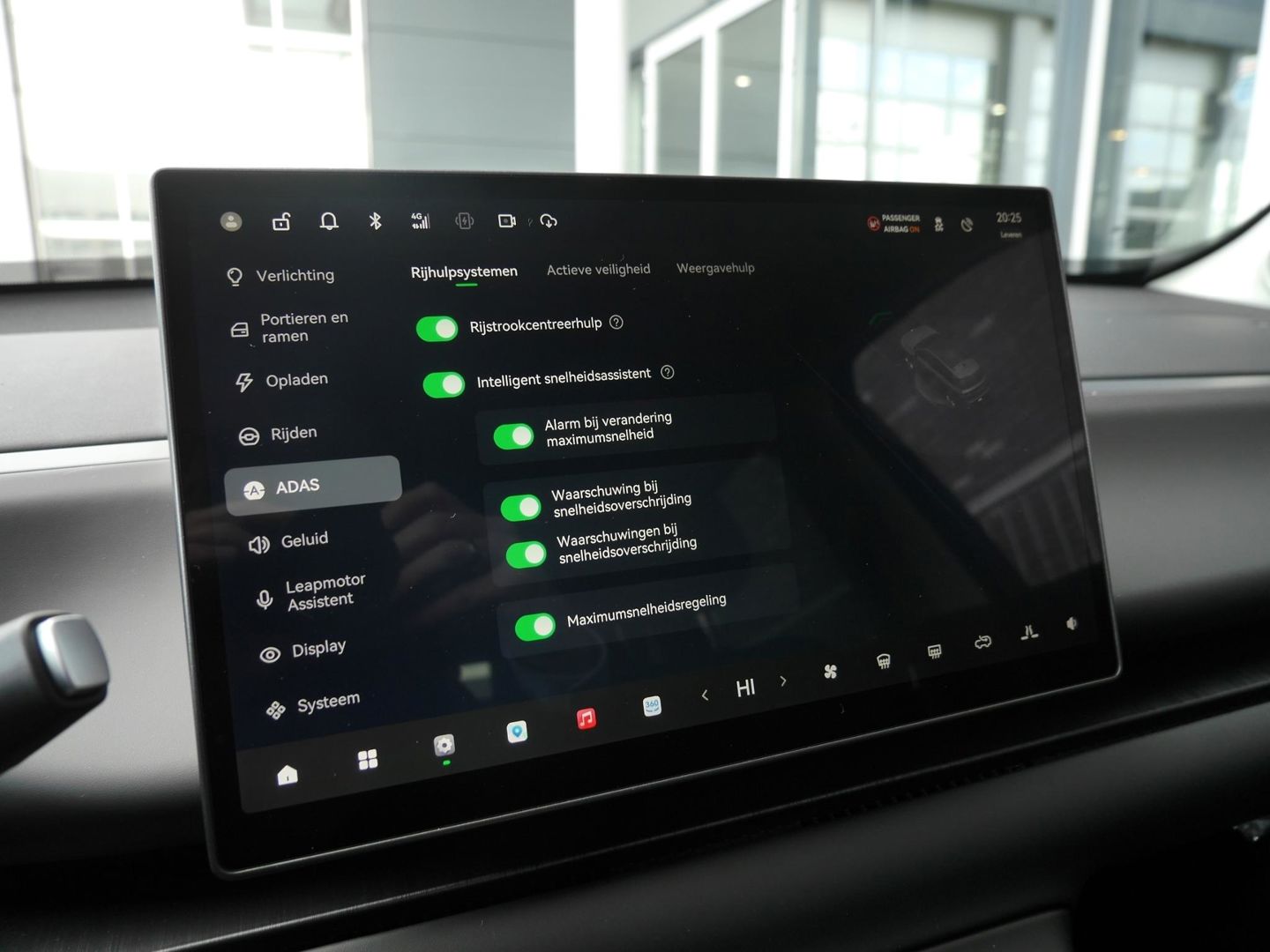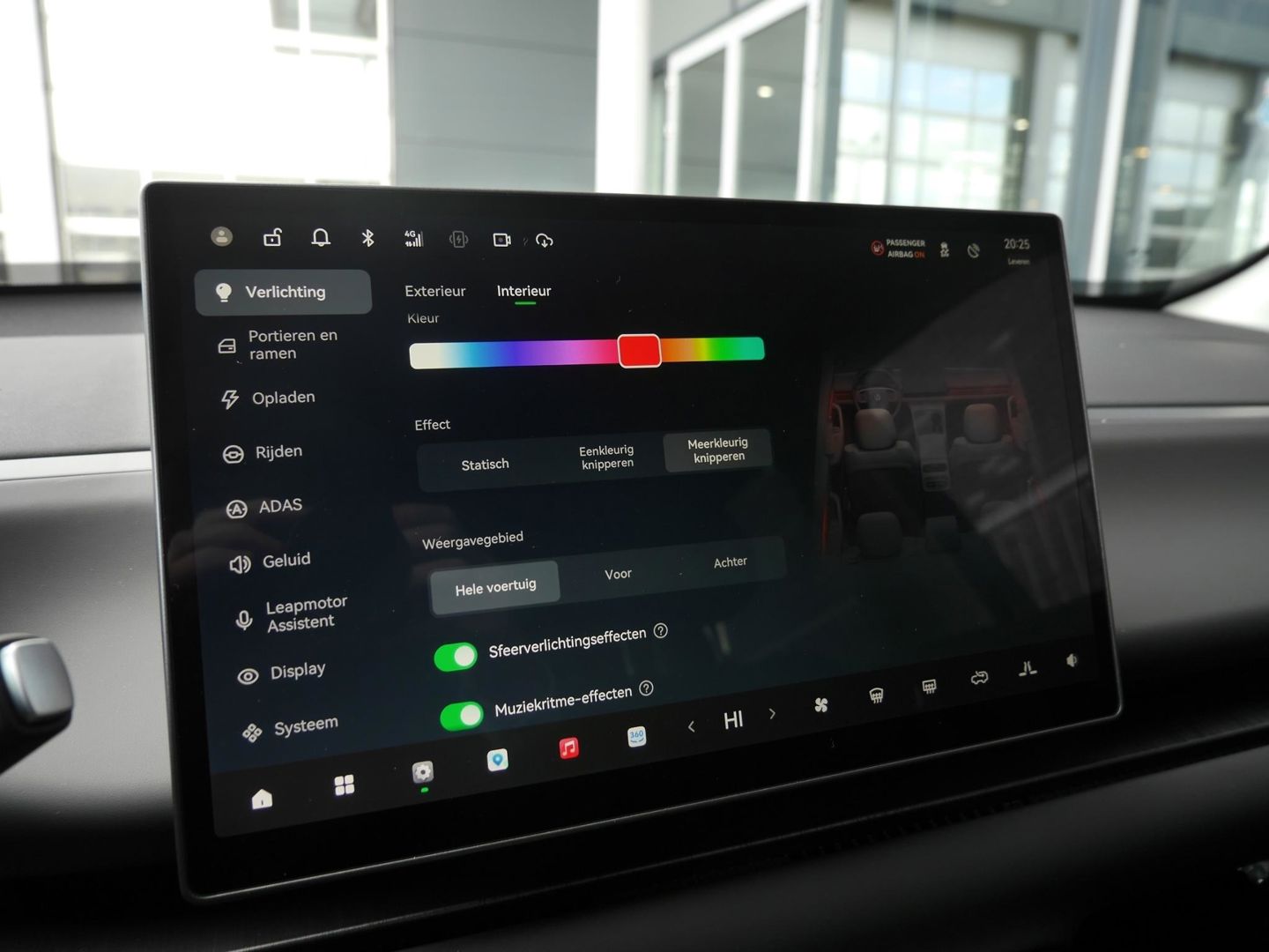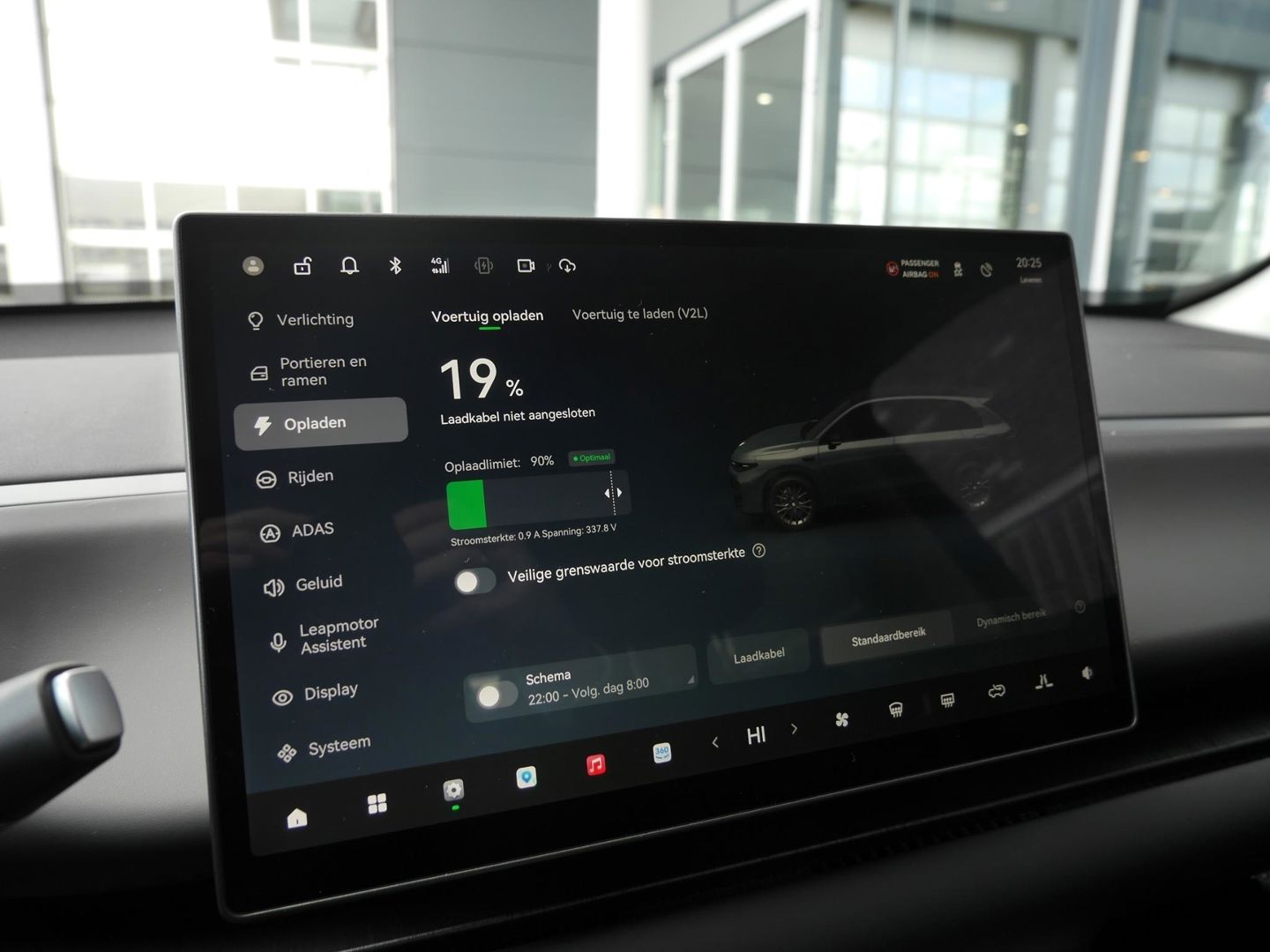 Het digitale dashboard zorgt voor een super functionele display van reisinformatie. De functie van de 360 graden camera in deze auto is om u een totaaloverzicht van de omgeving te geven, ongeacht hoe smal de straat of parkeerplek is. Adaptive cruise control is een comfortabele en veilige optie. Het systeem reguleert de snelheid en houdt automatisch afstand tot uw voorligger. Zoals u van zo'n jonge auto mag verwachten, zijn hier ook de geavanceerde remote services aanwezig. Simpelweg met een app op uw smartphone controleert u op afstand de status van de auto en bedient u diverse functies. In deze C10 vindt u niet alleen schakelaars op het stuur om het full map navigatiesysteem te bedienen en het audio-installatiesysteem met DAB-ontvangst, maar er is ook spraakbediening. Met achteropkomend verkeer waarschuwing, electronic climate control, draadloos opladen en centrale deurvergrendeling met afstandsbediening is deze Leapmotor helemaal compleet.