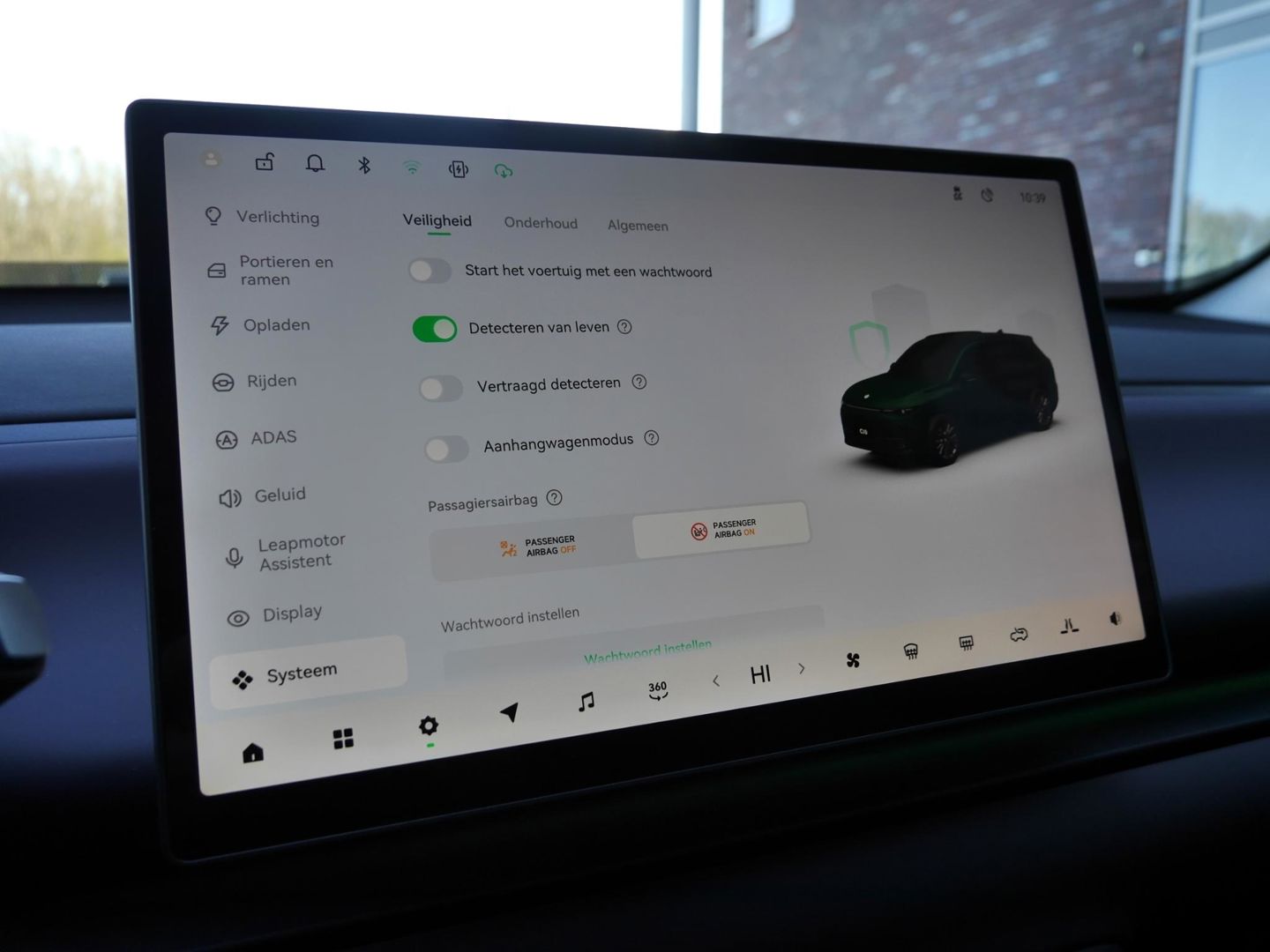 De intelligente veiligheidssystemen in deze auto waken continu over uw veiligheid. Keep your lane? Het Lane-keeping systeem zorgt er automatisch voor. De sensor van het forward collision warning-systeem registreert permanent de afstand tot voorliggers en grijpt in als een botsing dreigt. Het systeem voor vermoeidheidsherkenning neemt het waar als uw concentratie verslapt en geeft u dan een waarschuwing. In deze Leapmotor vinden we verder een dodehoekdetectie en autonoom remsysteem.