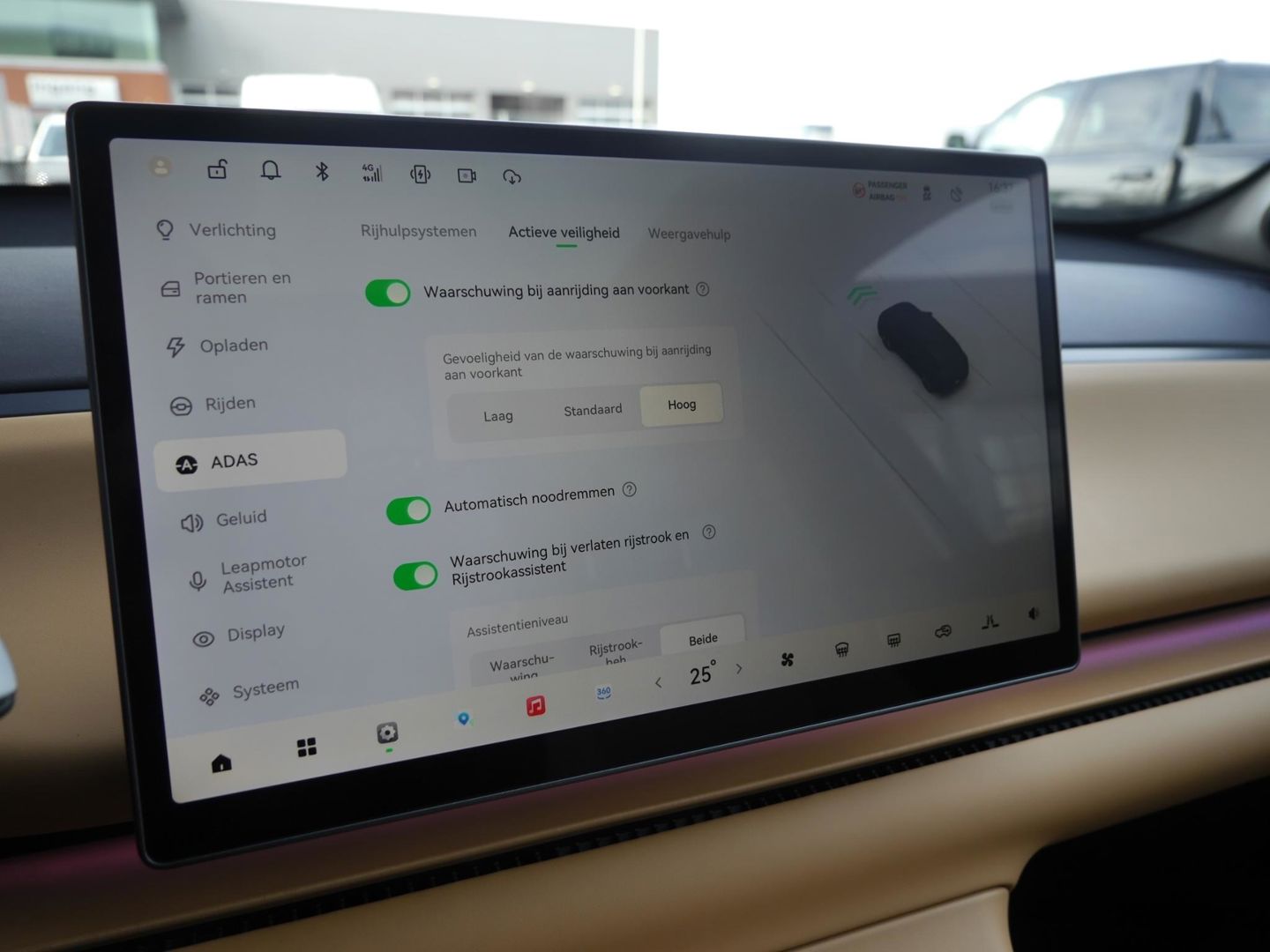 Geavanceerde veiligheidssystemen kijken tijdens elke rit met u mee en schatten continu de risico's in. Het Lane-keeping systeem garandeert dat u zich niet onverhoeds buiten de lijnen van de rijstrook begeeft. Het systeem van forward collision warning, of in gewoon Nederlands 'botswaarschuwing', treedt in werking als de sensor te weinig afstand signaleert met een voor- of tegenligger. Vermoeidsheidsherkenning neemt tekenen van vermoeidheid waar bij de bestuurder. Het systeem voorkomt dat er daardoor ongelukken gebeuren. Verder is deze auto uitgerust met dodehoekdetectie en autonoom remsysteem.