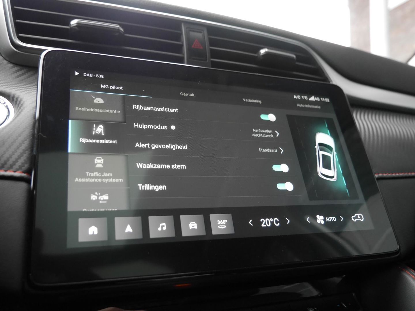 Als bestuurder van deze MG bent u nooit alleen. U wordt onderweg bijgestaan door technologische hulpmiddelen die samen met u de weg in de gaten houden. Als het nodig is, grijpen ze zelfs in, door te remmen of bij te sturen. Belangrijk voor uw veiligheid en die van uw passagiers is de verkeersbord-detectie in deze auto. Met het Lane-keeping systeem gaat u nooit onbedoeld over de streep. Forward collision warning helpt u om kop-staart aanrijdingen te voorkomen. Bovenop deze veiligheidsfeatures heeft deze MG bovendien dodehoekdetectie, hill hold functie, brake assist en bandenspanningcontrolesysteem.