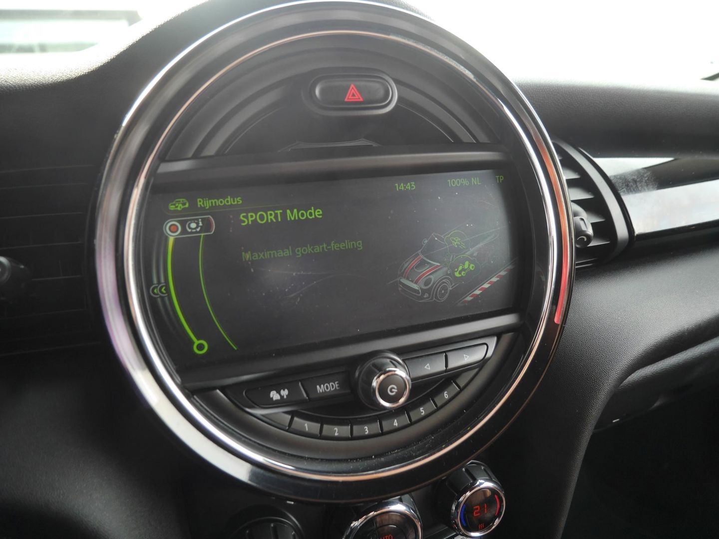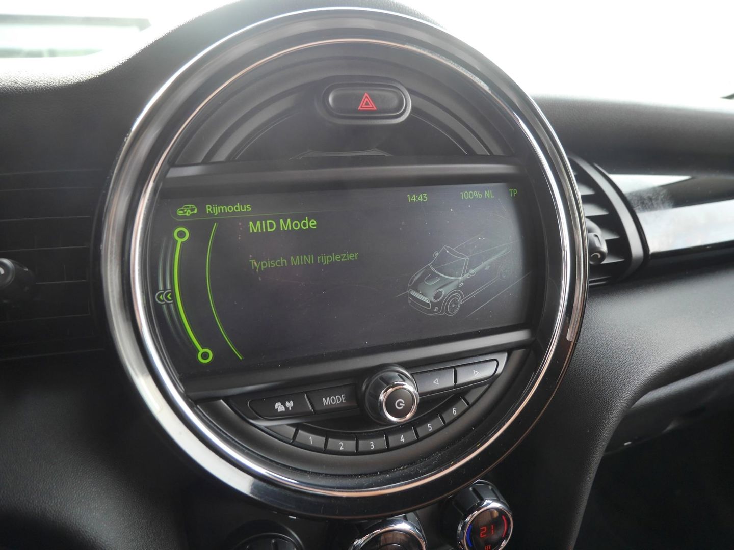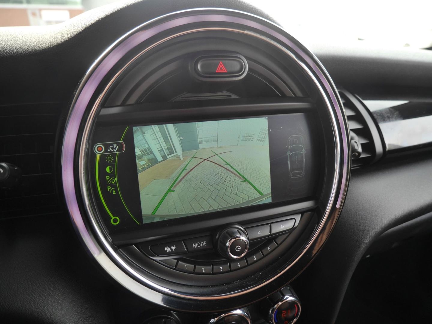 De achteruitrijcamera vergemakkelijkt achteruit inparkeren. U ziet duidelijk wat er achter de auto gebeurt. U kunt uw ogen op de weg houden, want het audio-installatiesysteem en het navigatiesysteem met harde schijf bedient u vanaf het stuurwiel. U verwacht natuurlijk automatische airconditioning in deze auto, en die is er dan ook. Het hoort bij een intelligente auto als deze dat hij zelf in staat is om zijn omgeving in de gaten te houden. Dat doet deze Mini met een automatisch inschakelbare verlichting en een regensensor. Kilometers rijden met een exacte snelheid? Dan is de cruise control je vriend! Wat u ook in deze auto kunt vinden zijn sportstuurwiel, keyless entry en boordcomputer.