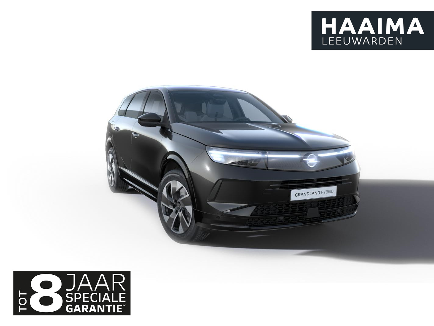 Modelnaam in reliëf midden op achterklap