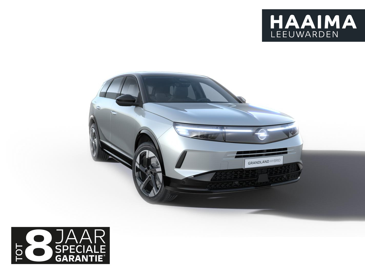 Modelnaam in reliëf midden op achterklap