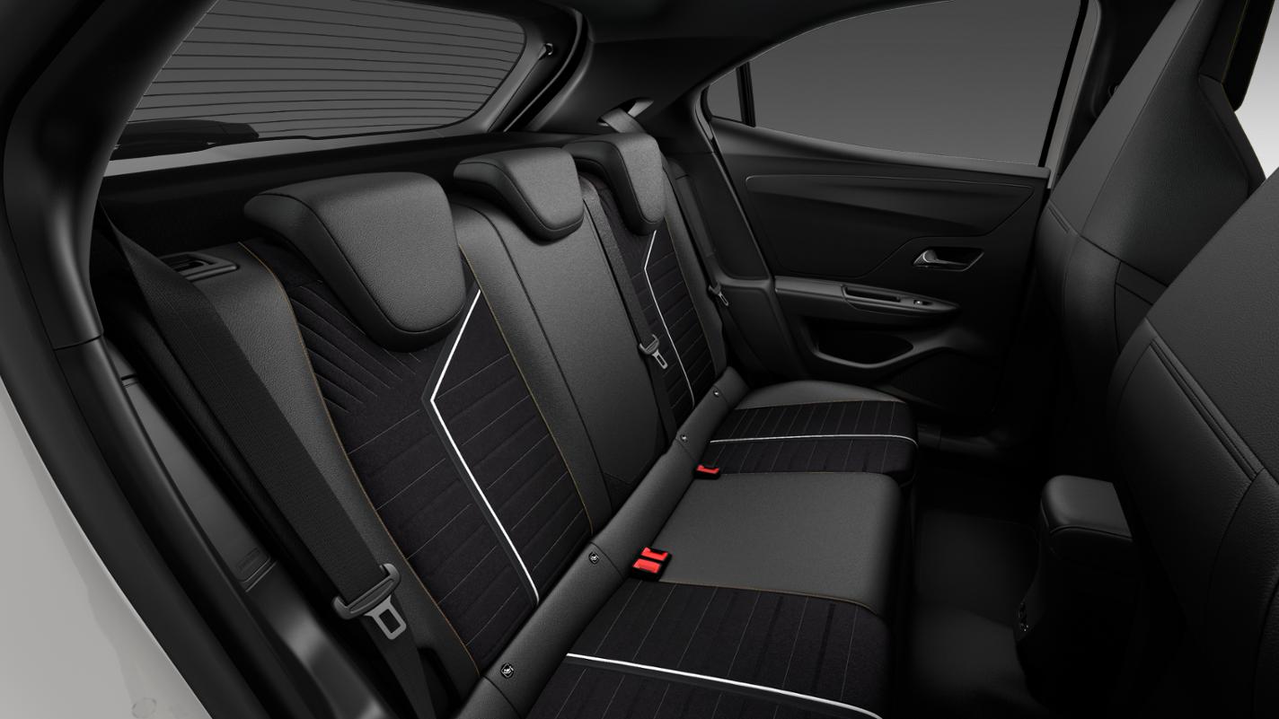 Opel logo en modelaanduiding in zwarte letters op achterzijde