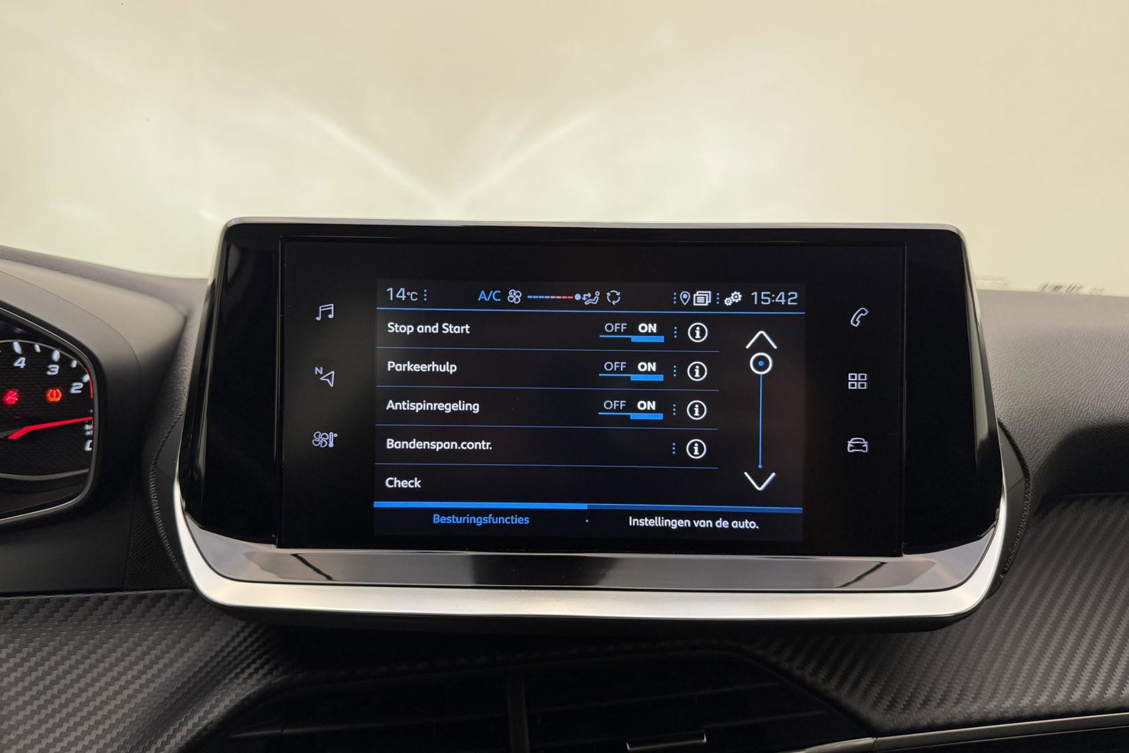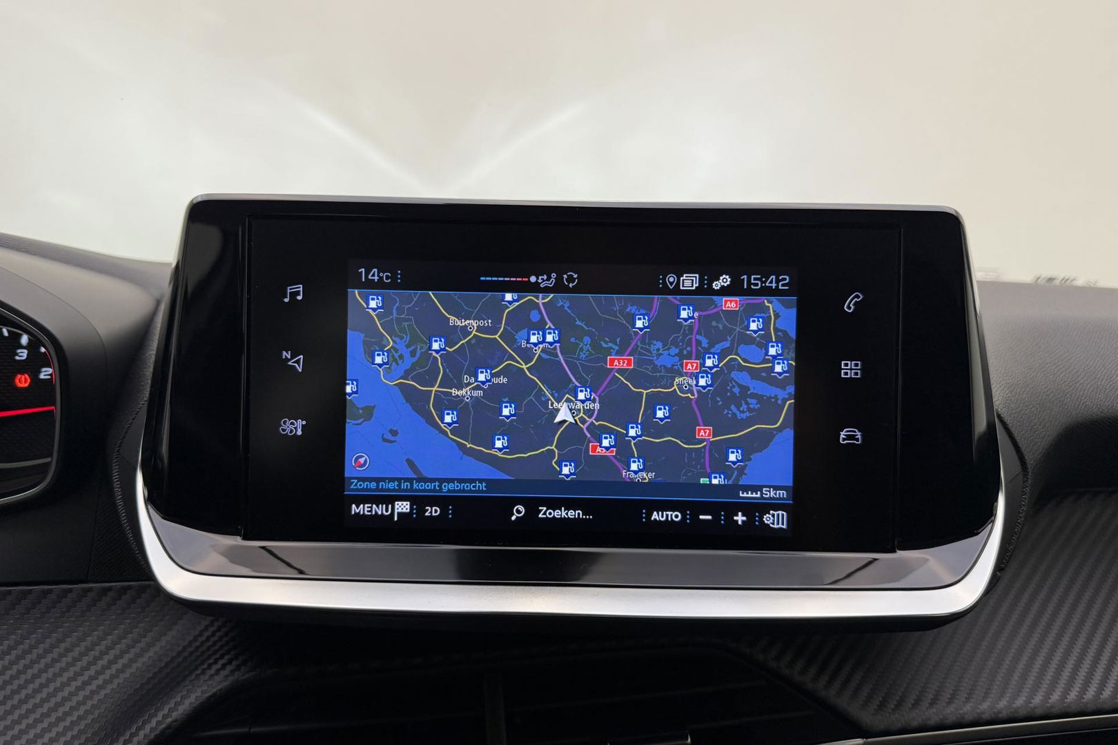 Bij het inparkeren hoeft u het laatste stukje niet te gokken: de achteruitrijcamera kijkt voor u uit. Deze Peugeot 208 is voorzien van remote services. Via uw smartphone bedient u diverse functies ook op afstand en krijgt u informatie over de status van uw auto. Tijdens de rit bedient u het audiosysteem en het full map navigatiesysteem met de knoppen op het stuur of met uw stem. Ook op de korte stukken is de cruise control een uitkomst. Kijk maar bij de benzinepomp! Het hele jaar door zorgt airconditioning voor een prettige temperatuur. Ook lederen stuur en centrale deurvergrendeling met afstandsbediening horen tot de voorzieningen op deze auto.