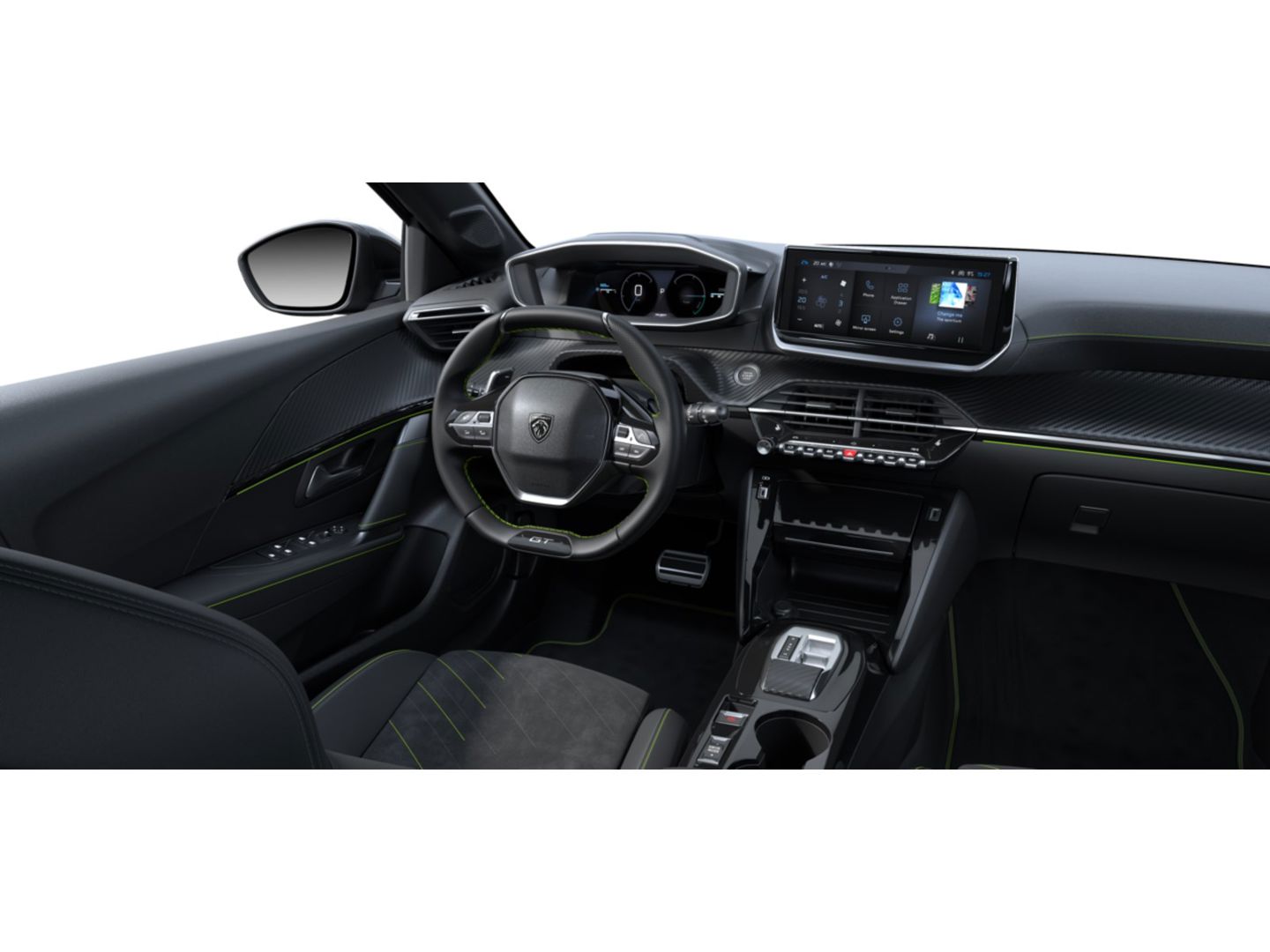 Armsteunen op de voorportieren bekleed met kunstleder met groen sierstiksel (GT-Line)
