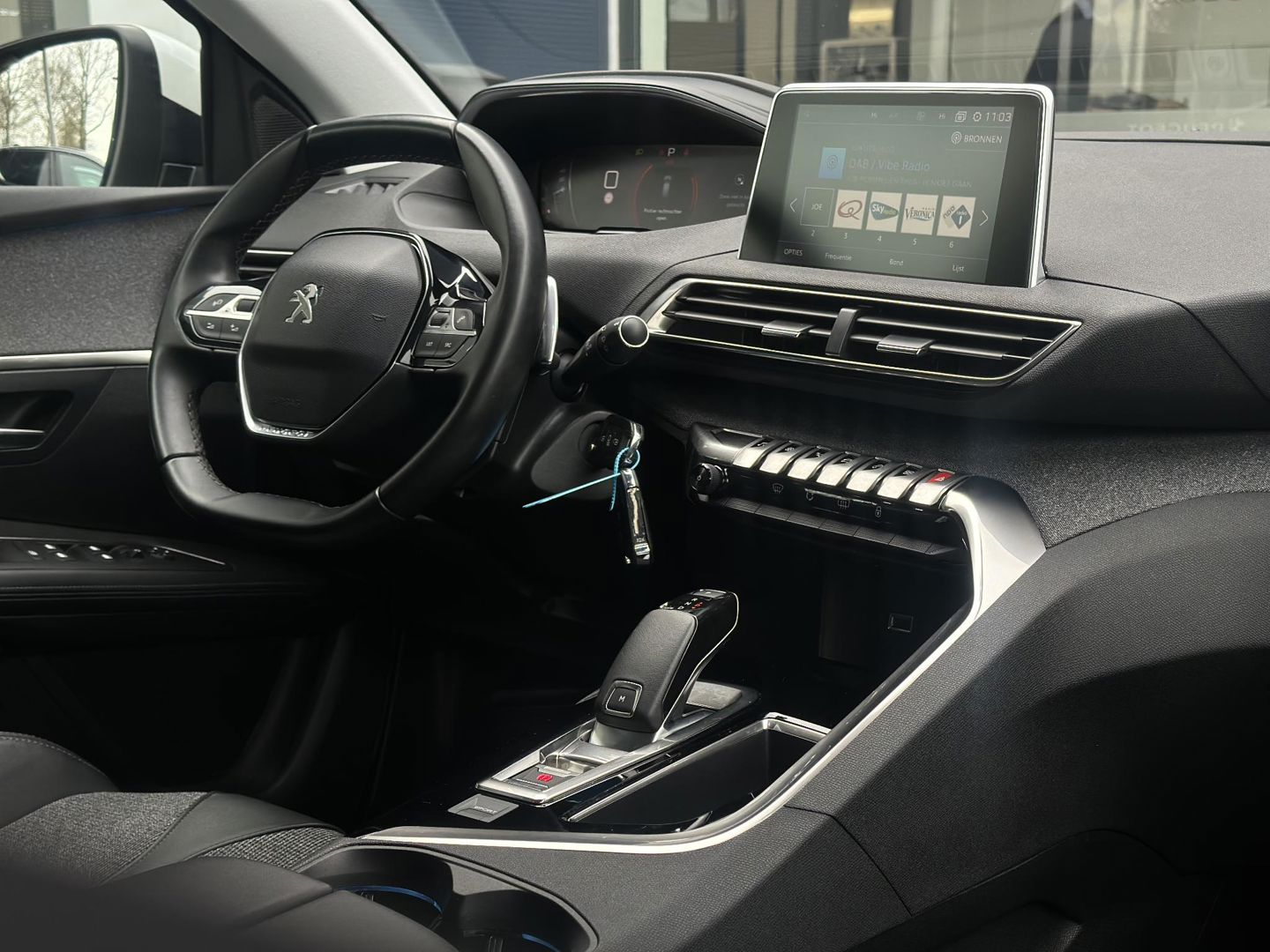 Alle functies die u onderweg nodig heeft, worden permanent geregistreerd en zijn afleesbaar op het digitale dashboard. De radio harder of zachter zetten of iemand uit uw contactenlijst bellen. Dankzij de spraakbediening doet u dit allemaal met uw stem. Een smartphone met internetverbinding legt eenvoudig overal contact met de auto. U kunt functies activeren en de conditie van de auto monitoren. Ook praktisch: deze auto is voorzien van een eigen navigatiesysteem. Tot de standaard uitrusting van deze auto hoort ook electronic climate control. Deze Peugeot is voorzien van DAB ontvangst, parkeersensoren achter, regensensor, cruise control, sportstuurwiel en automatisch dimmende binnenspiegel.