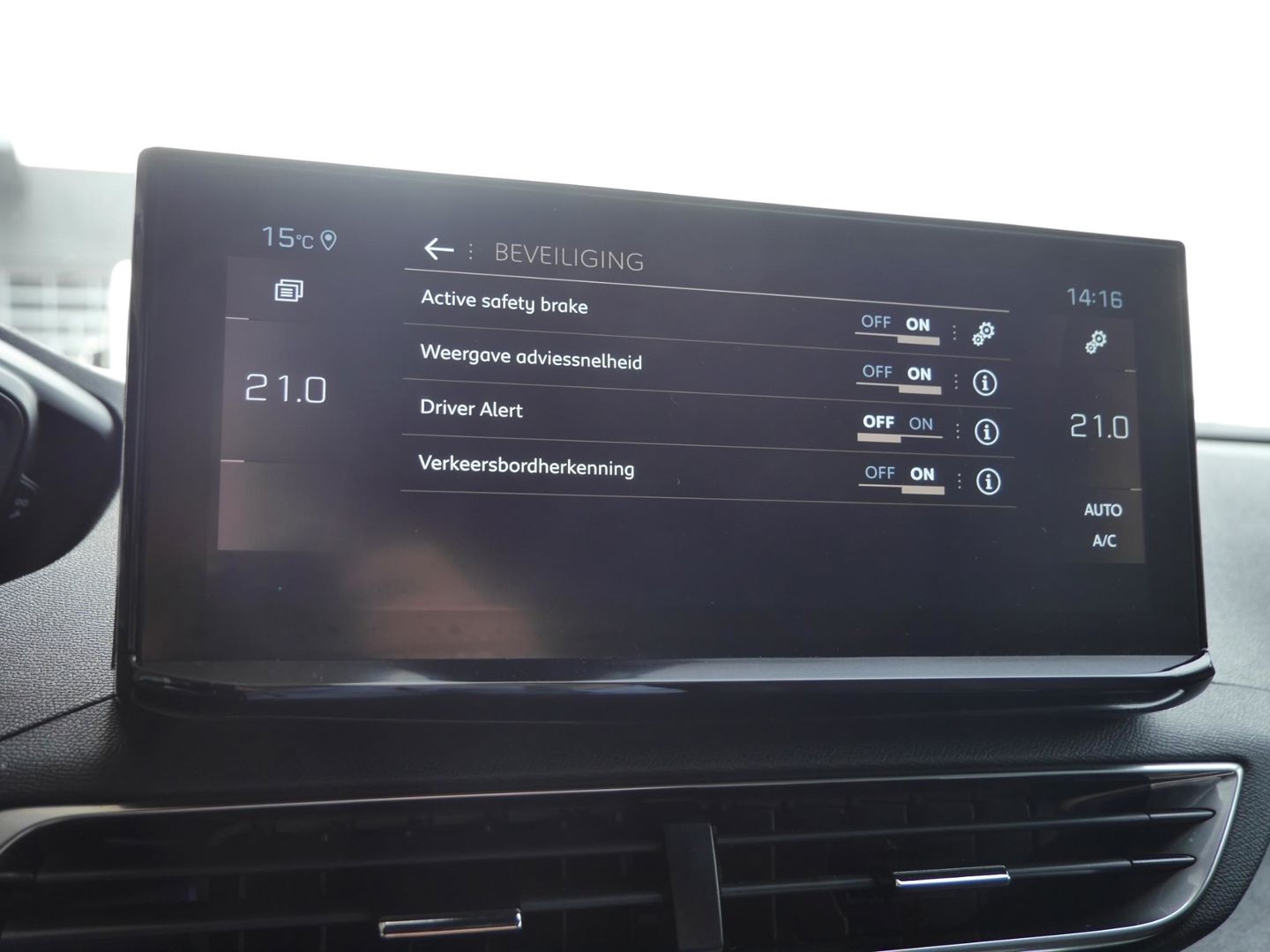 U geniet nog meer van het rijden met uw Peugeot omdat u wordt beschermd door intelligente veiligheidssystemen. Bij de veiligheidssystemen van deze Peugeot hoort ook de verkeersbord-detectie. Die leest tijdens het rijden als het ware met u mee en attendeert u op de significante verkeersborden langs en boven de weg. Het Lane-keeping systeem doet precies wat nodig is: waarschuwen en corrigeren bij onbedoelde overschrijding van de rijstrooklijnen. Het forward collision warning-systeem berekent via een sensor de afstand tot het verkeer vóór u en komt in actie als er gevaar bestaat van een botsing. Bovenop deze veiligheidsfeatures heeft deze Peugeot bovendien dodehoekdetectie, hill hold functie, brake assist, vermoeidheidsherkenning en bandenspanningcontrolesysteem.