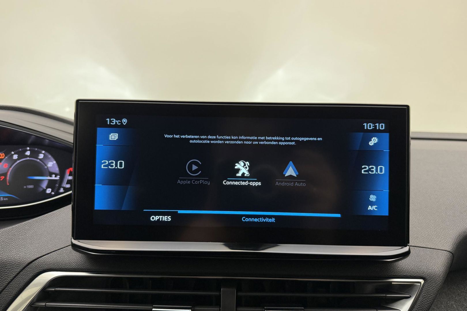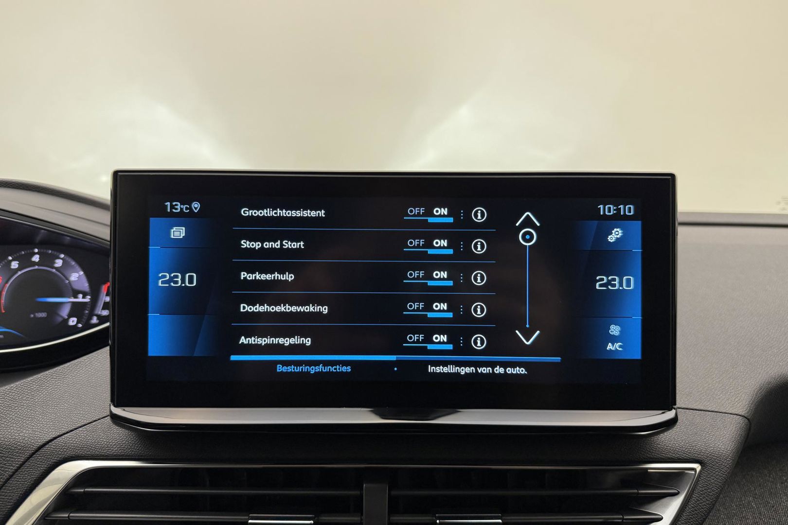 Spraakbediening herkent uw stem en voert opdrachten uit terwijl u beide handen aan het stuur houdt. In één oogopslag weet u de complete systeemstatus van deze auto. Dankzij Connected Services. Het comfort wordt verhoogd door de aanwezige automatische airconditioning. De parkeersensoren registreren alles. Ook dat ene paaltje dat net buiten uw gezichtsveld valt. Om de veiligheid onderweg te verhogen, heeft deze Peugeot zowel een automatisch inschakelbare verlichting als een regensensor aan boord, zodat hij zelf de verlichting en de ruitenwissers kan inschakelen. U bent in deze Peugeot ook voorzien van cruise control, keyless entry, automatisch dimmende binnenspiegel en lederen stuur.