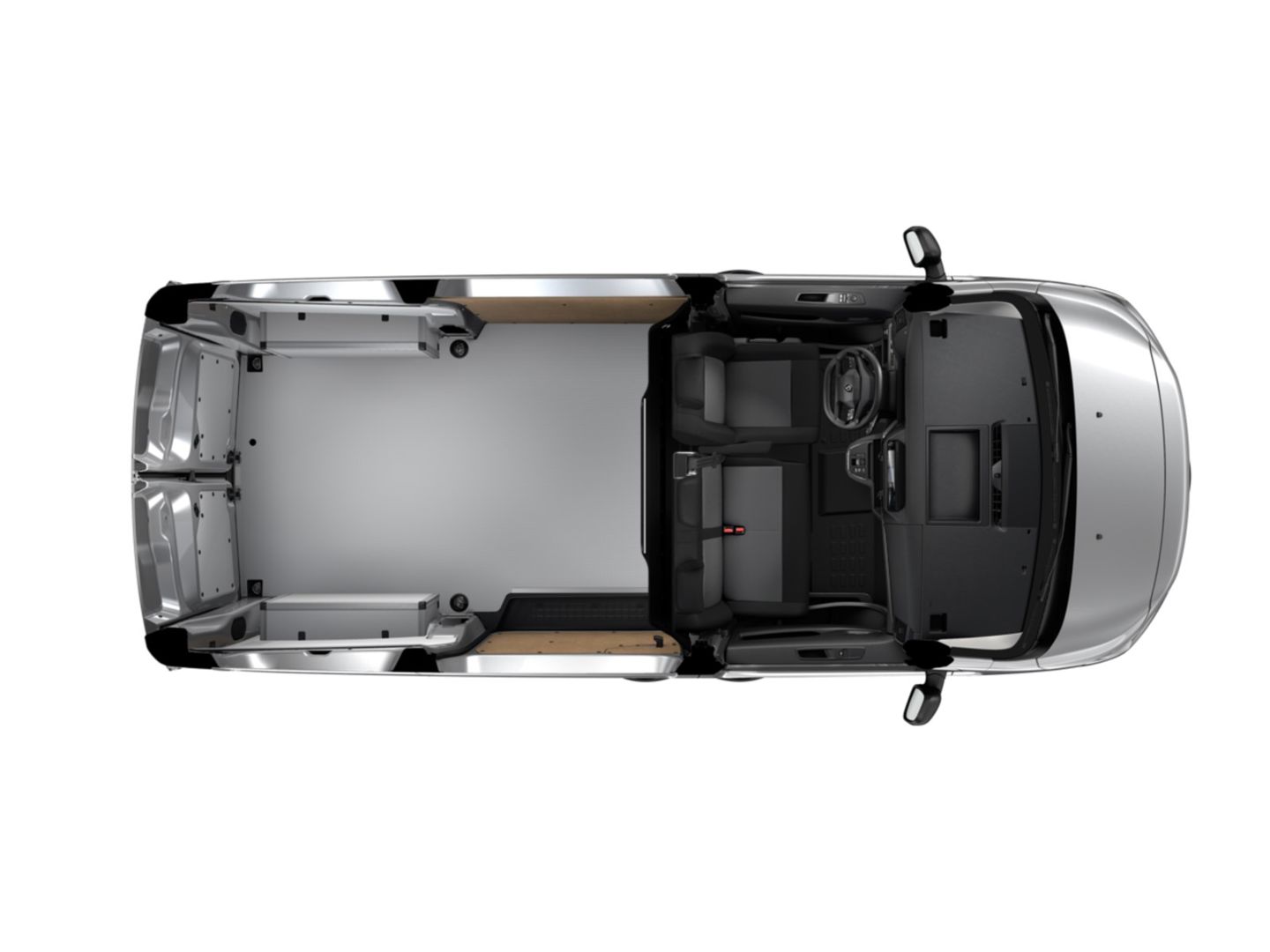 Bevestigingspunten voor dakdragers of imperiaal: 3 punten per zijde op alle versies met optie achterklep (geen imperiaal mogelijk) of 5 punten per zijde op alle versies met achterdeuren