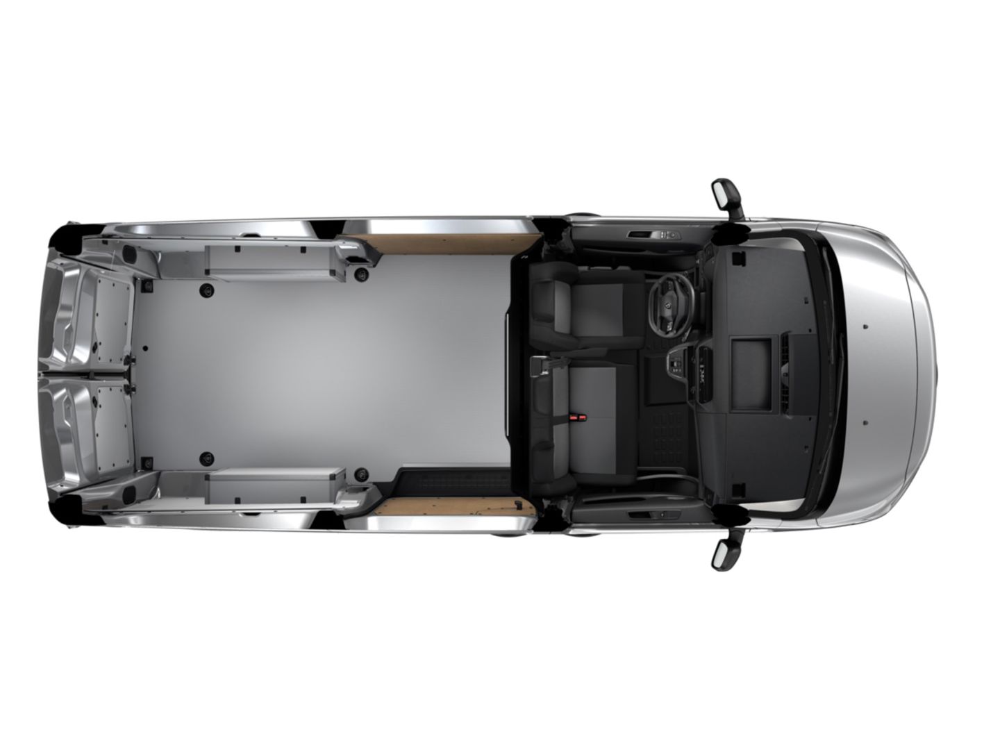 Bevestigingspunten voor dakdragers of imperiaal: 3 punten per zijde op alle versies met optie achterklep (geen imperiaal mogelijk) of 5 punten per zijde op alle versies met achterdeuren