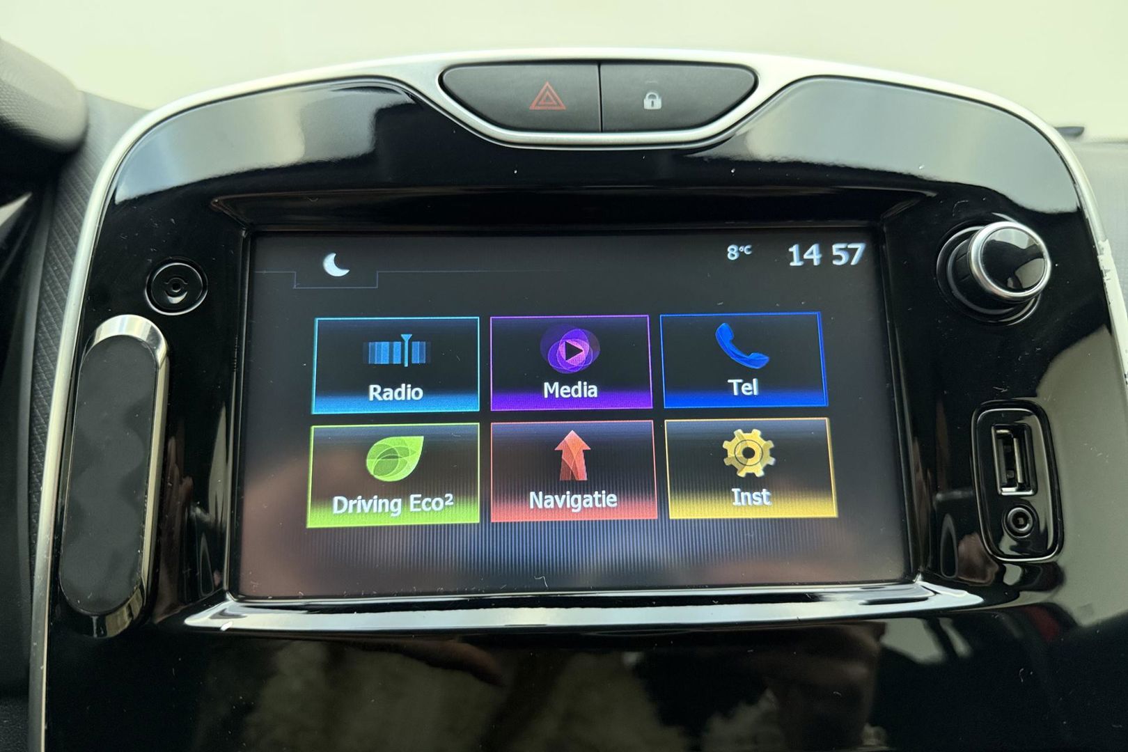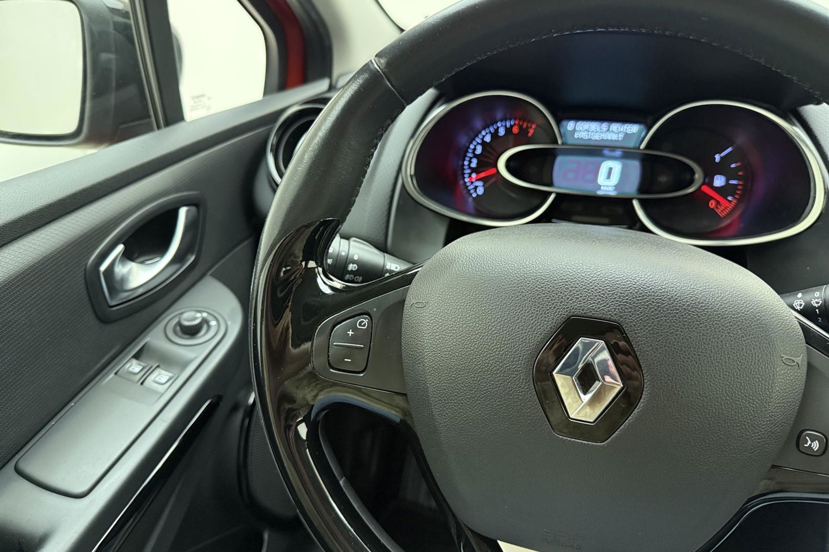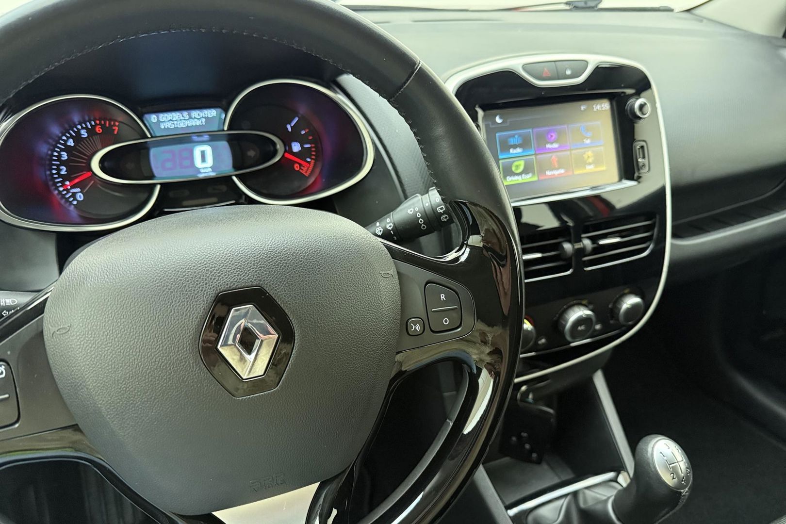 Naast de routeinformatie van het navigatiesysteem kunt u muziek via het audiosysteem ook online beluisteren via bluetooth. Op een rustige weg komt de cruise control helemaal tot z'n recht. Deze auto heeft airconditioning aan boord. U bent in deze Renault ook voorzien van DAB ontvangst, centrale deurvergrendeling met afstandsbediening, bagage afdekhoes, boordcomputer en verstelbaar stuur.