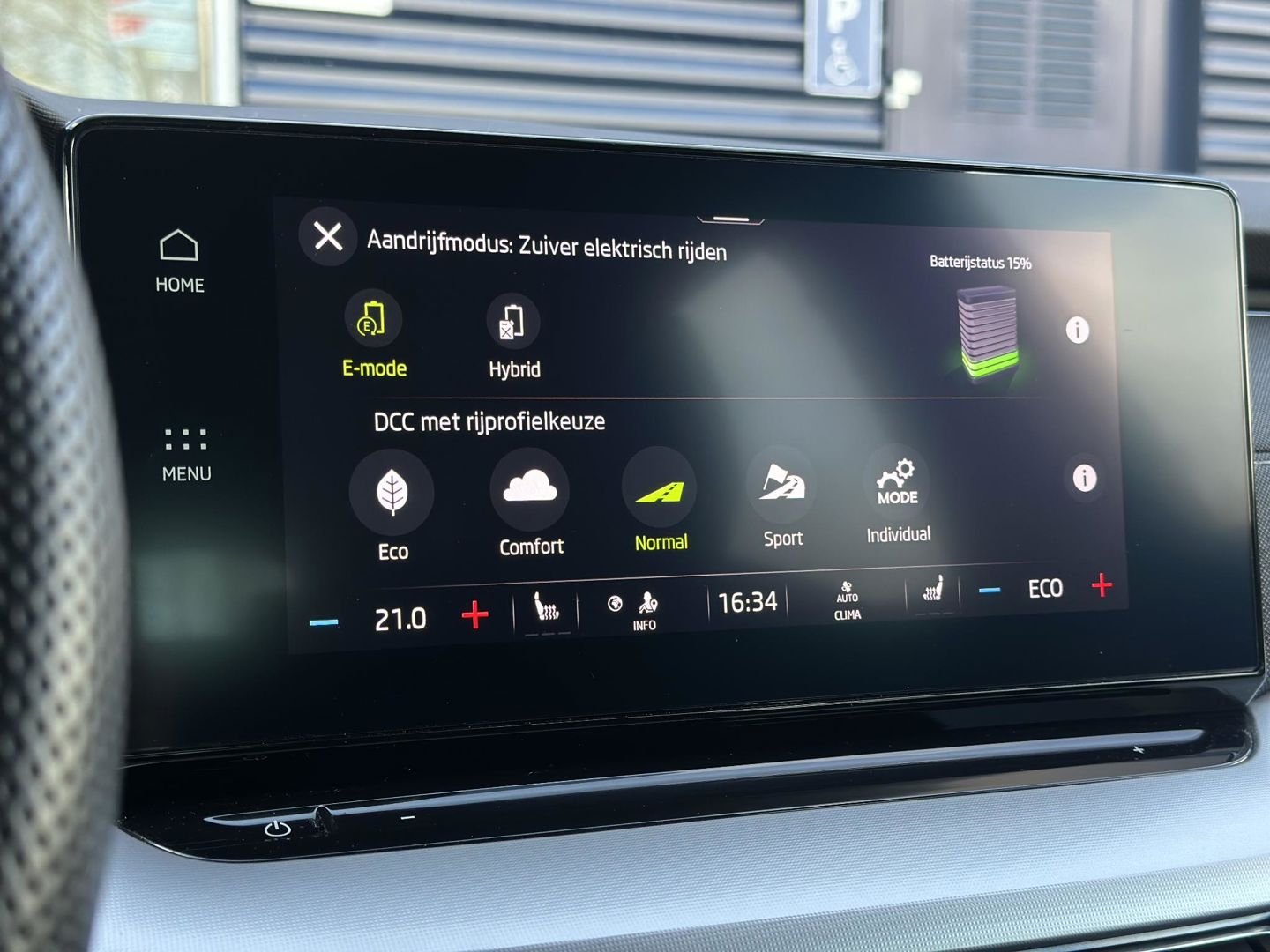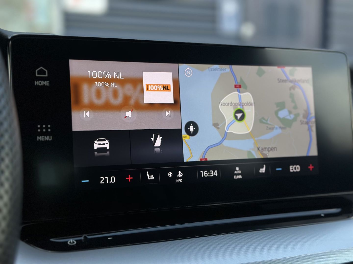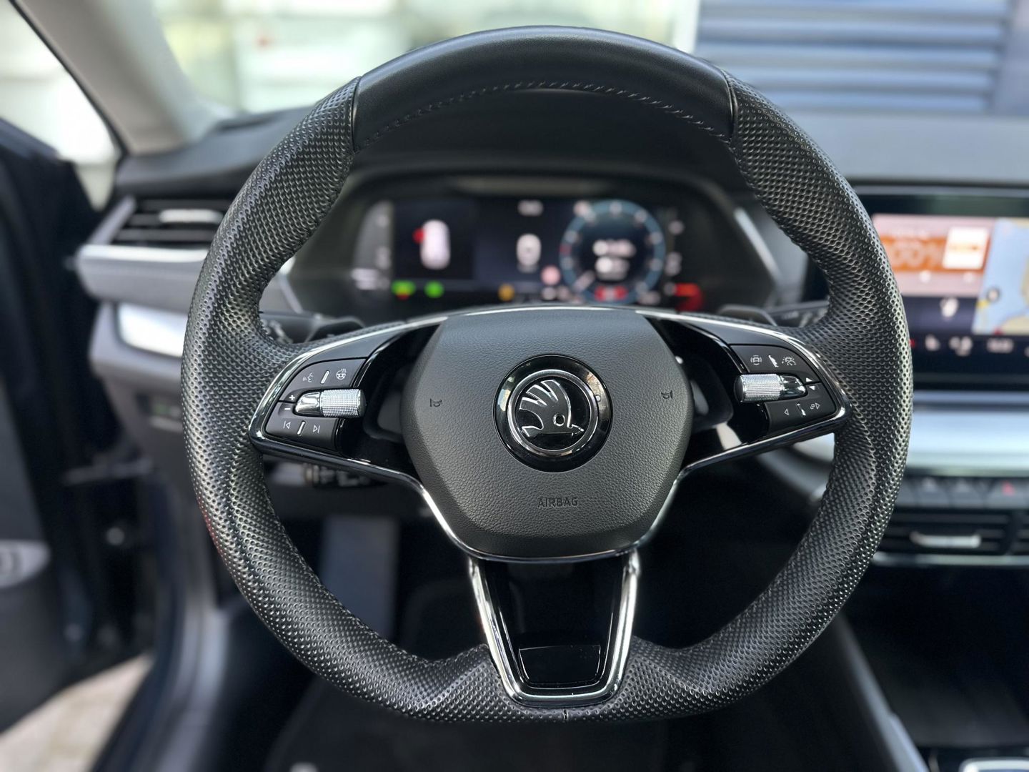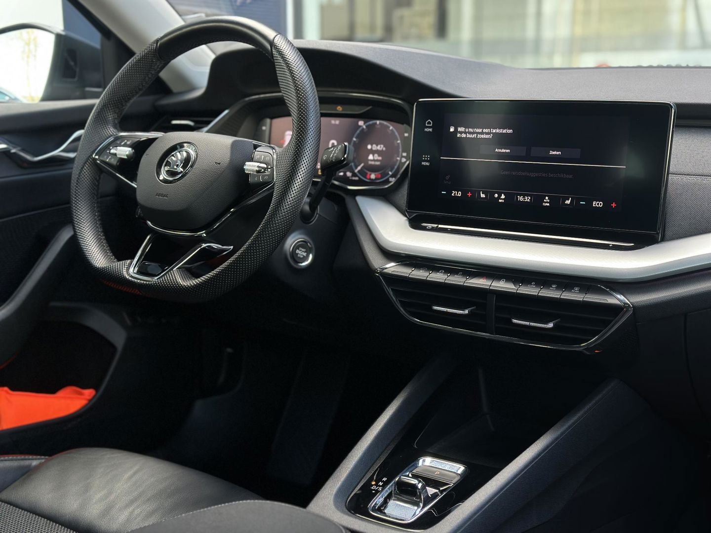 Over het digitale dashboard is goed nagedacht. Alle belangrijke functies binnen en buiten in één oogopslag. Adaptive cruise control is een comfortabele en veilige optie. Het systeem reguleert de snelheid en houdt automatisch afstand tot uw voorligger. Dankzij Connected Services weet u precies waar uw auto geparkeerd staat. Ook andere functies, zoals bandenspanning en brandstofniveau, zijn via de app altijd onder handbereik. Deze Skoda is voorzien van spraakbediening voor het full map navigatiesysteem en voor het audiosysteem met DAB-ontvangst. Maar u kunt ook de knoppen op het stuur gebruiken. Maak uw smartphone echt draadloos, ook bij het opladen. Met de draadloze telefoonlader. Met automatische airconditioning, sportstuur met schakelpaddels, parkeersensoren achter, regensensor, keyless entry en automatisch dimmende buitenspiegels is deze Skoda helemaal compleet.