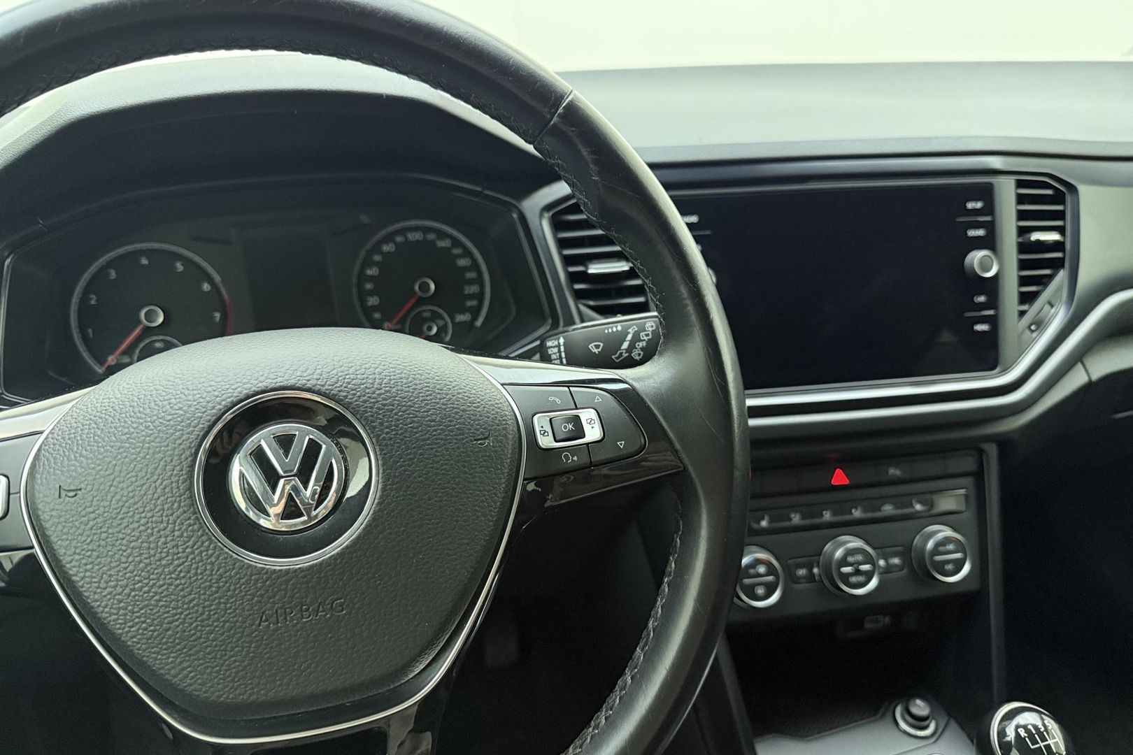 Adaptive cruise control houdt de ingestelde snelheid vast en houdt automatisch afstand tot uw voorligger. Het bedienen van het audio-installatiesysteem vanaf het stuurwiel helpt u om gefocust te blijven op de weg. Automatische airconditioning regelt volautomatisch de temperatuur. U kiest de gewenste temperatuur en het systeem doet de rest. Boem is ho? Niet bij deze Volkswagen T-Roc. De piepjes van de parkeersensoren waarschuwen u op tijd voor obstakels. Het drukke verkeer eist onderweg al uw aandacht op. Daarom is het goed dat deze Volkswagen is voorzien van diverse systemen die u assisteren tijdens de rit. Een automatisch inschakelbare verlichting neemt het waar als het donker wordt of gaat schemeren, en schakelt dan automatisch de verlichting in. Op dezelfde manier "ziet" de regensensor de eerste spatjes regen en schakelt dan de ruitenwissers in, en als het harder gaat regenen zet hij de ruitenwissers ook in een snellere stand. De Volkswagen is standaard voorzien van: automatisch dimmende binnenspiegel, lederen stuur, centrale deurvergrendeling met afstandsbediening, boordcomputer en lederen versnellingspook.